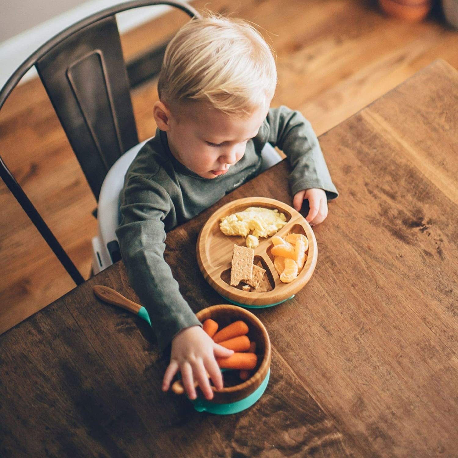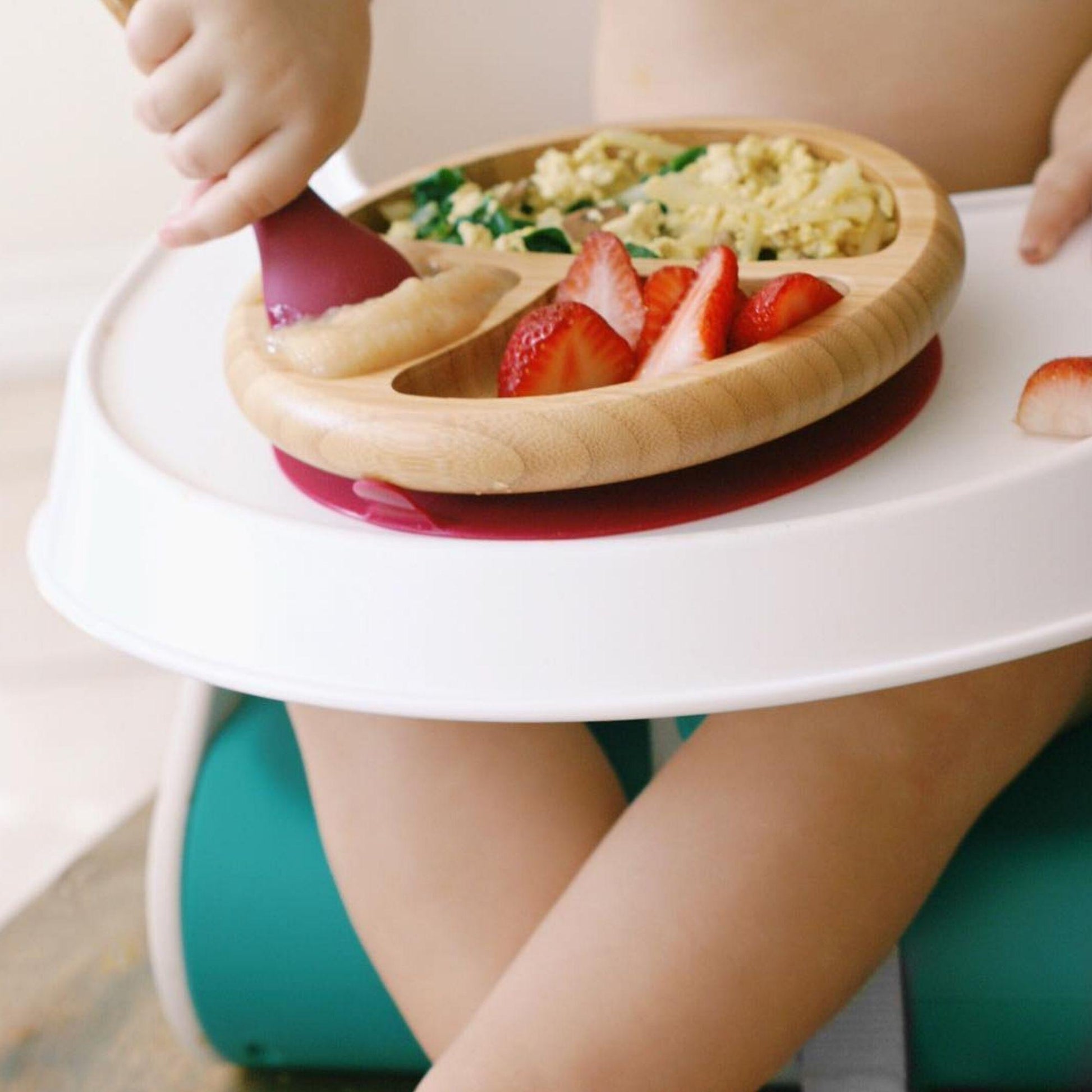 We use only nontoxic and hypoallergenic materials—bamboo, stainless steel, and silicone—to make our baby dishware.