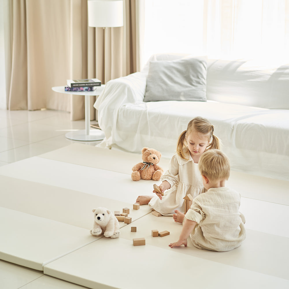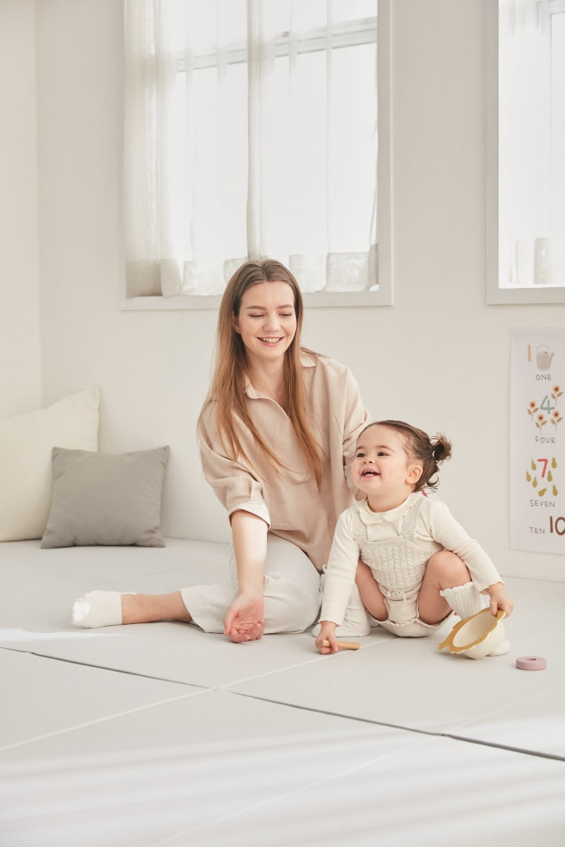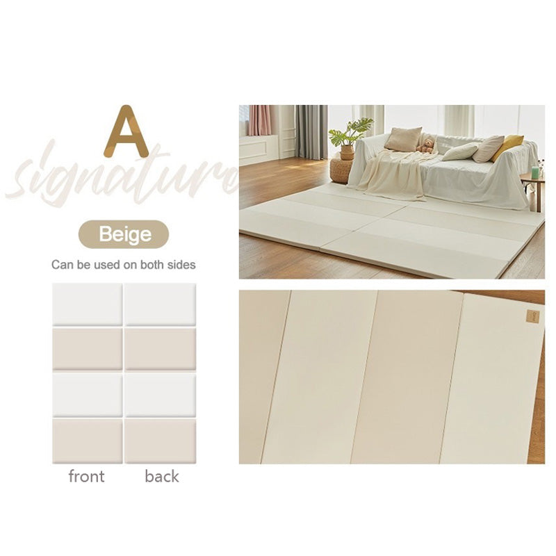 Caraz Signature Clean Folding Playmat is a unique no-gap foldable playmat that is extra hygienic and clean! The side of the playmat has no gaps just seams faces up. This significantly reduce cleaning time and no crumbls will get stuck in the playmat! Not to worry! If you need to make the playmat smaller for storing, it can still be folded into half its size! With antibacterial properties that inhibit the growth of germs and bacteria - perfect for babies with sensitive skin or dermatitis. The exterior of the playmat is made of high-end PU textile that is highly waterproof. Featuring high elasticity 8-layer PE foam which provides great noise and shock absorption. Beautiful minimalistic and aesthetic design that fits right into the home.