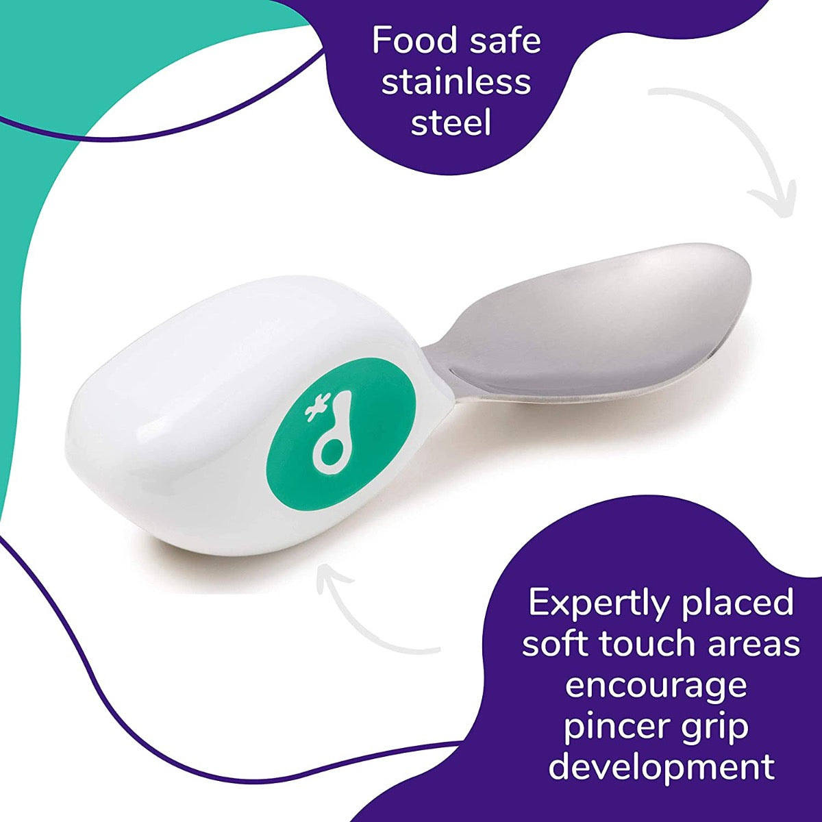 - Expertly placed and colorful soft touch areas encourage your child to intuitively open up their fingers and ‘pinch’ the cutlery helping them progress from the basic palmar grip to the more advanced ‘pincer grip’ (which a core motor skill they’ll need to hold a pencil, use scissors and, in time, use adult cutlery