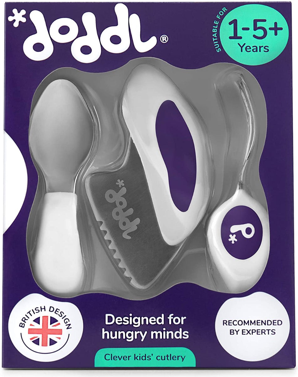 - The handles of Doddl cutlery sit within your child’s hand, with the main body nestling comfortably in their palm.