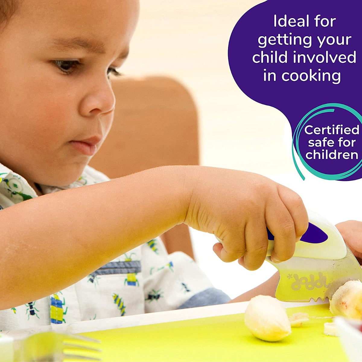 Doddl has been designed specifically for children, enabling them to use cutlery successfully and with ease, building independence, confidence and ability. Doddl helps your child develop skills, build confidence and make the successful transition to adult cutlery. Compact, comfortable and easy to hold; Doddl helps children effectively direct food into their mouths; aiding better hand eye coordination and improve motor skills. Non-slip, soft touch materials are expertly placed so children instinctively use a 'pincer' grip; a key skill required for writing, drawing and using adult cutlery correctly. The unique Doddl knife is designed to cut through food (not skin) and nestles in the palm, enabling children to utilize the strength of their hand and arm to cut through food safely. The Doddl knife offers a safe alternative to a kitchen knife. Children can enjoy participating in food preparation and cooking - a great way to get children interested in healthy eating. Long lasting - helps transition to adult cutlery.