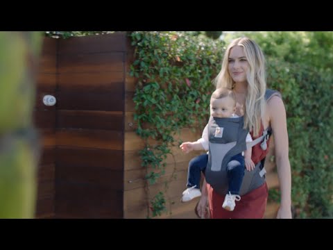 Beginning around 4 months (min 12 lbs / 5.4 kg), when baby has good head and neck control, the Ergobaby Hip Seat with the removable panel and shoulder straps can be used in the front carry – parent facing position. Beginning around 6 months, when baby can sit on their own, baby can be carried in the back carry. They can also be carried with just the hip seat in parent facing, outward facing and hip.