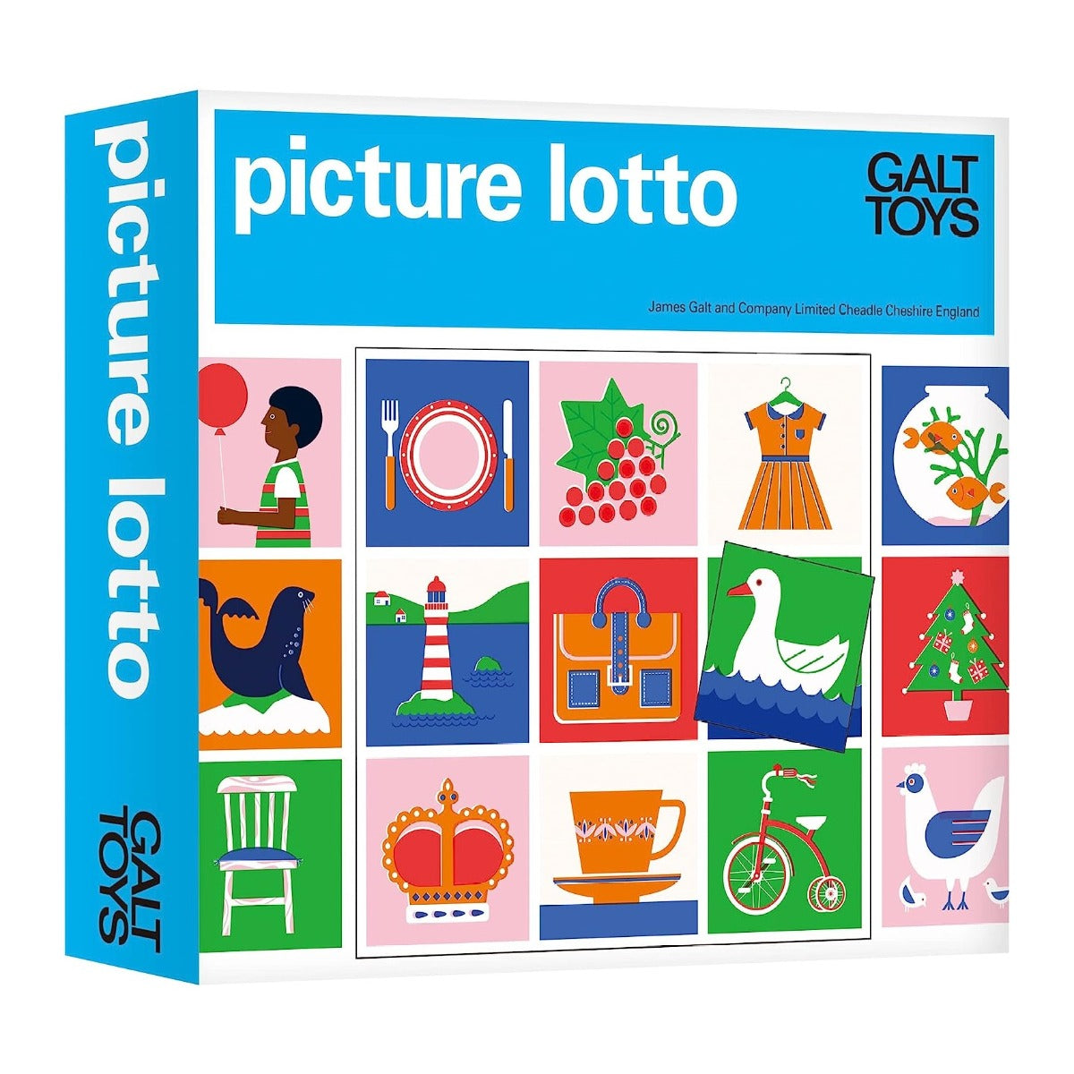 Galt Toys Picture Lotto Game is a fun-filled game based on the beloved Galt classic, Picture Lotto is the original Galt lotto game and one of the first easy-to-learn games that teach children the concept of following rules. First, a player picks up a card and calls out a description of the image, and then the player with a matching image on their board keeps the card. The first player to collect all their matching cards is the winner!