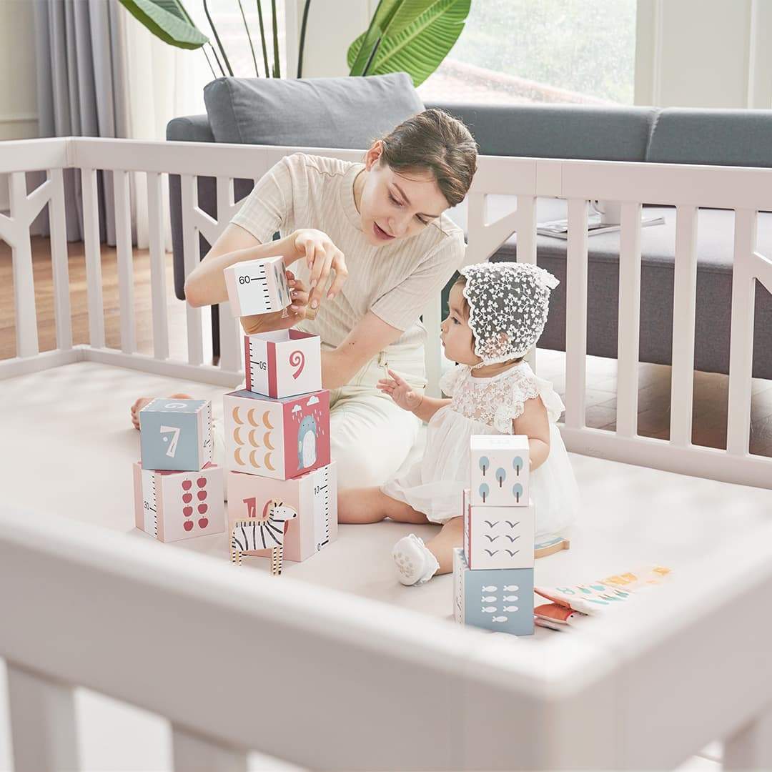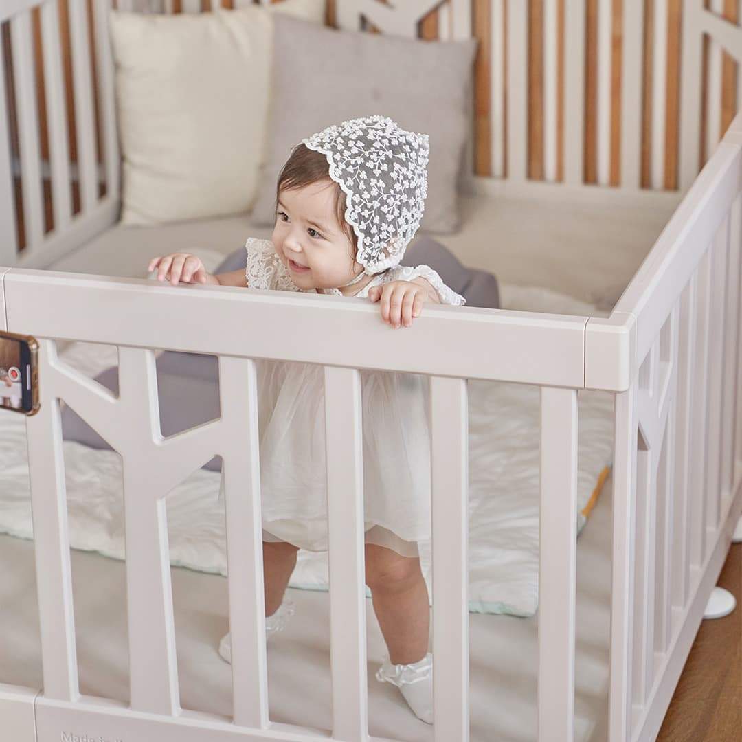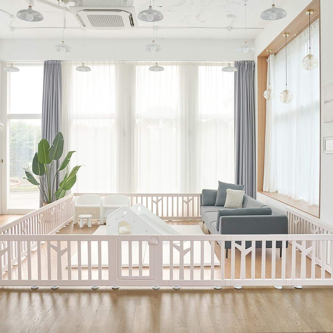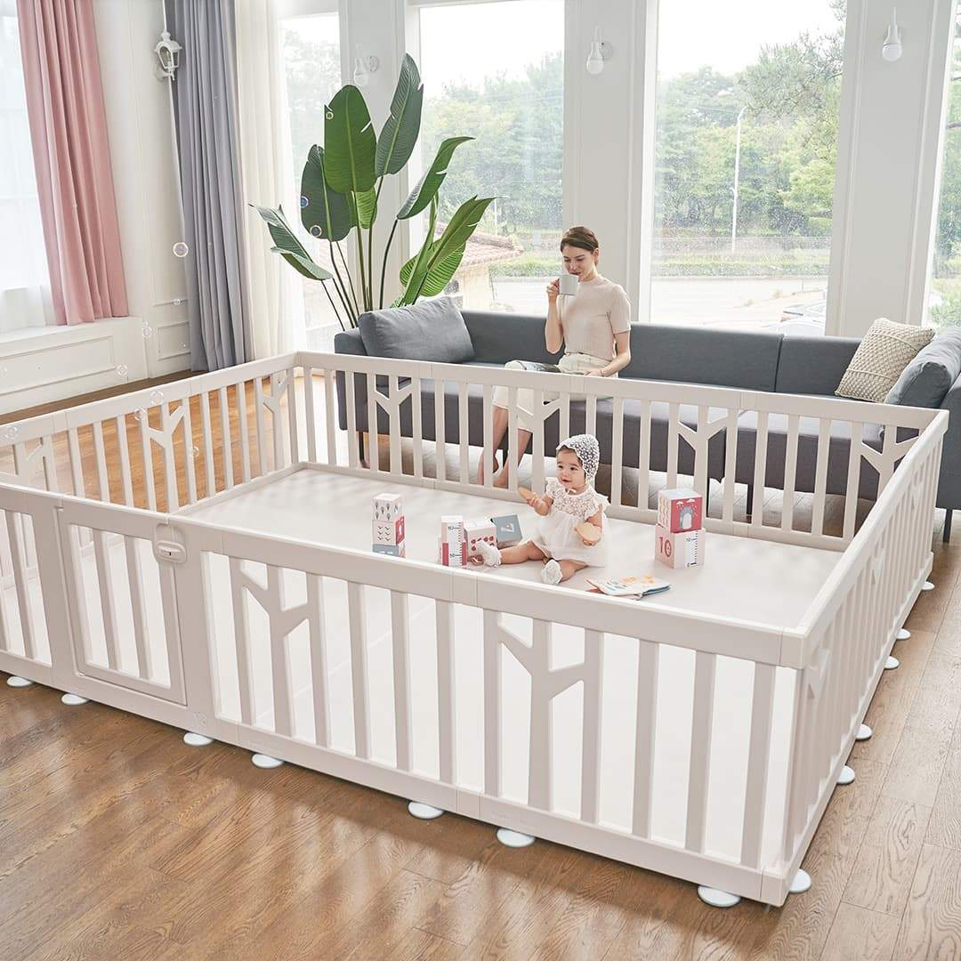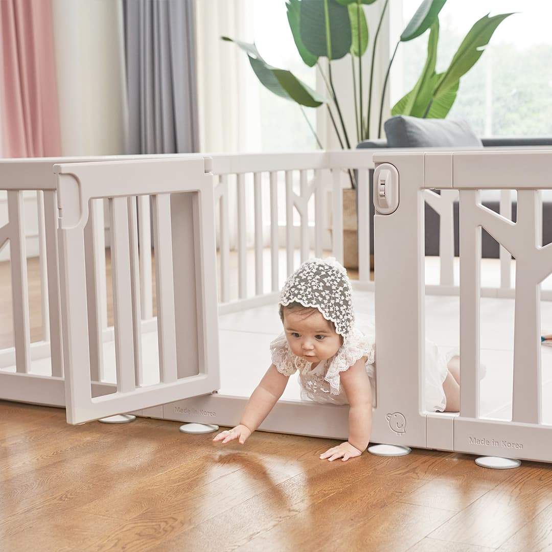 IFAM Birch Baby Yard w/ Door Set is a new IFAM Baby Play Yard series inspired by a wooden stylized design that resembles nature. Comes in soft modern colour (white and beige) with a classic birch wood design, these play yards are sure to blend seamlessly well in any home. Keeping babies safe with credible material and enhanced product safety features, The IFAM Birch Baby Play Yard has three new improvements! These 12 pieces set (11 panels + 1 door panel) play yard is easy to maintain and assemble.