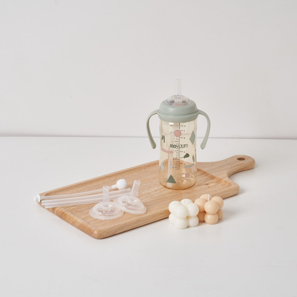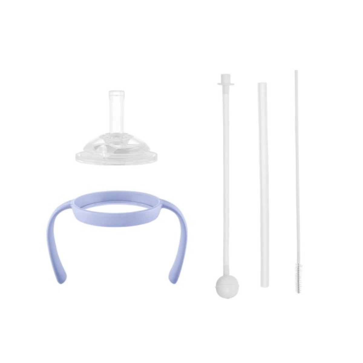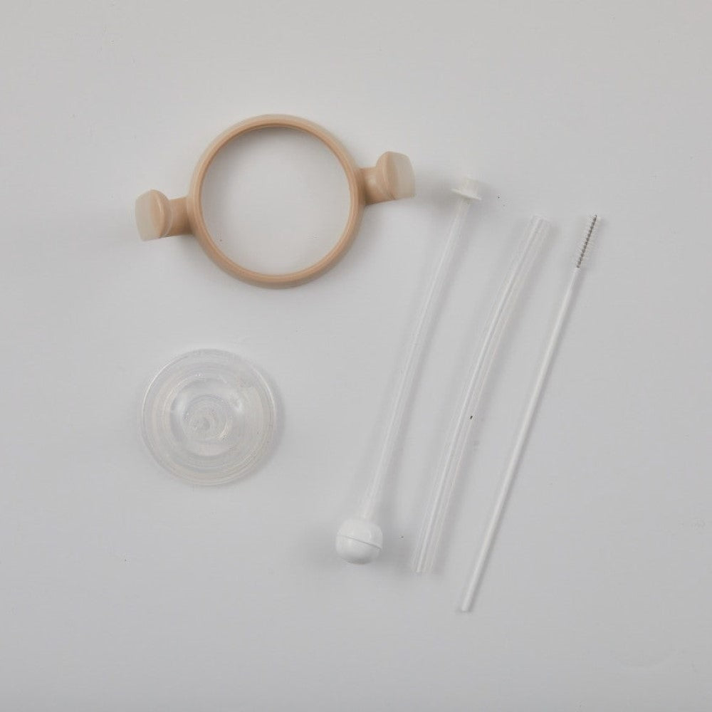 Moyuum 360-degree All-In-One Bottle Straw Set is a pack that comprises five essential replacement accessories for your All-in-One Bottle, including a weighted straw tube, straight straw tube, cleaning brush, handle, and straw top. Notably, these components offer exceptional flexibility as they can be bent in any direction without permanent indentations. The cross-shaped straw opening prevents overflow and ensures effective backflow protection, complemented by an air valve to prevent colic. What truly distinguishes this set is its versatility in accommodating your baby's growth, providing both a weighted straw and a non-weighted straight straw to facilitate a seamless transition as your baby progresses in their independent drinking journey.