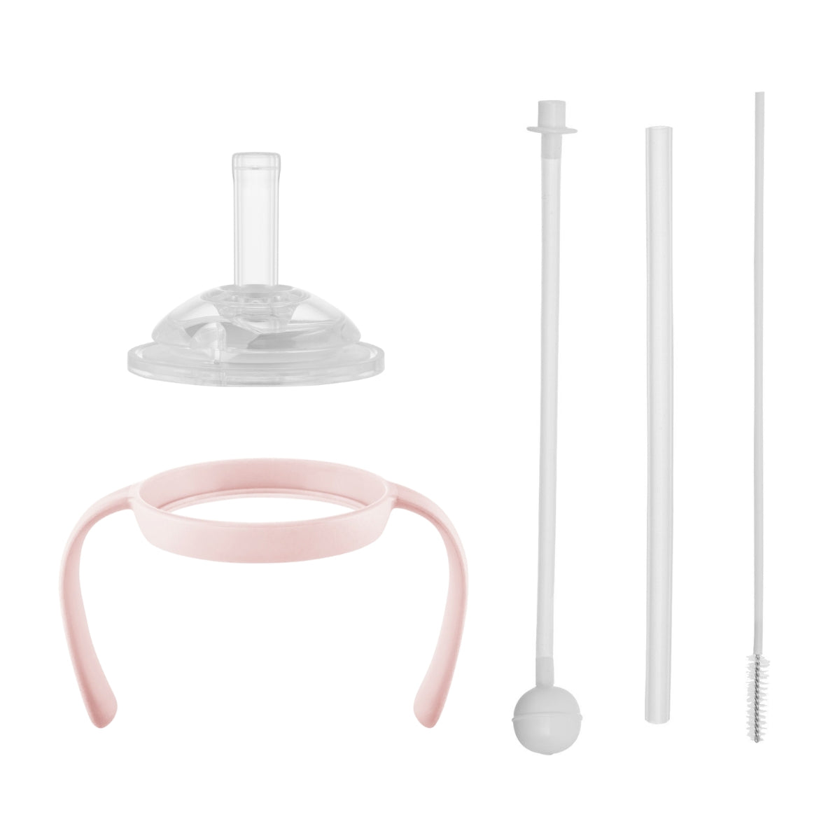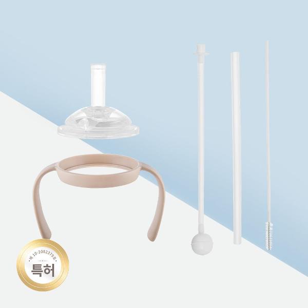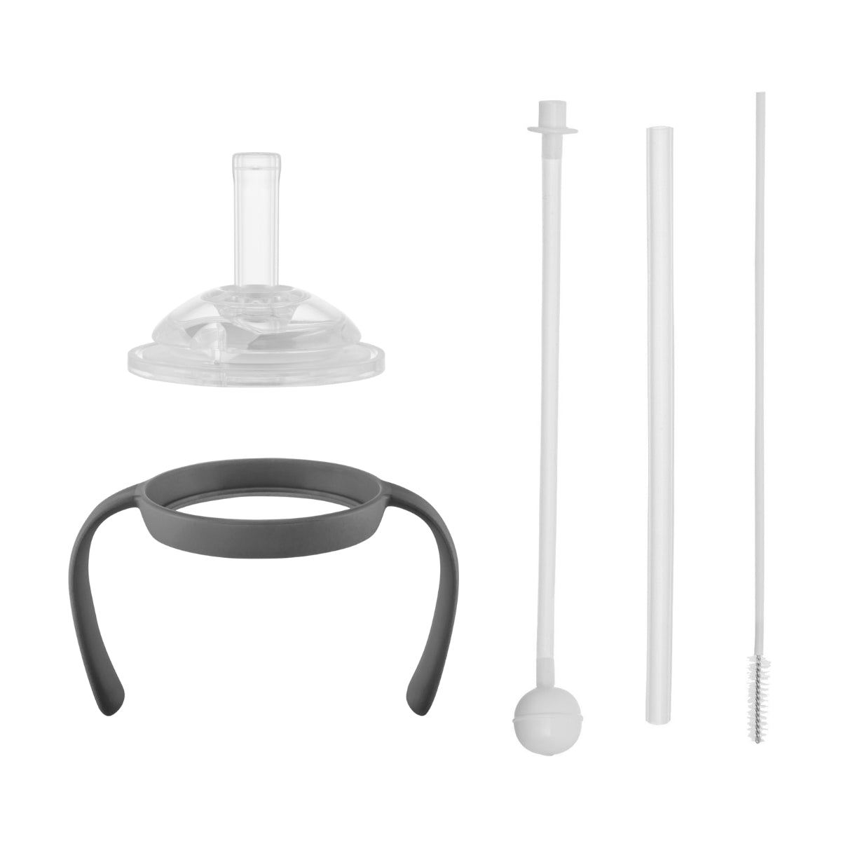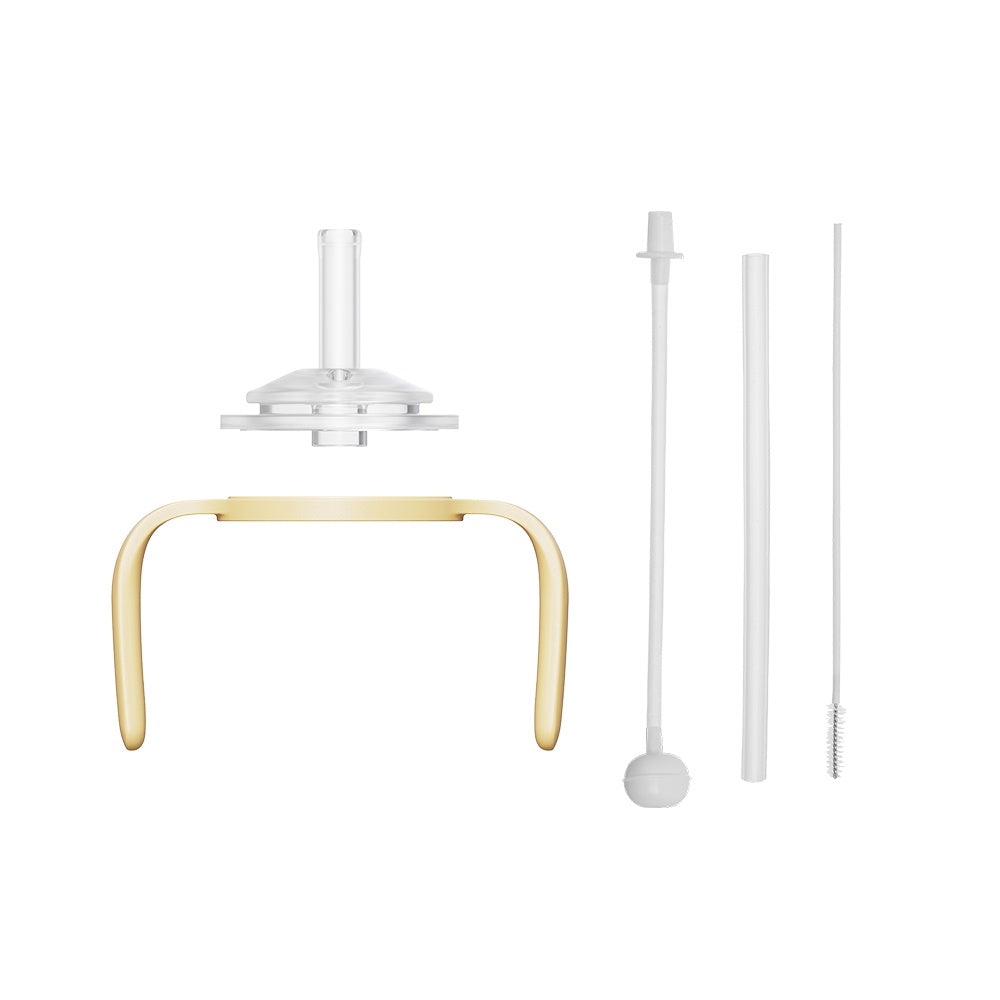 Moyuum 360-degree All-In-One Bottle Straw Set is a pack that comprises five essential replacement accessories for your All-in-One Bottle, including a weighted straw tube, straight straw tube, cleaning brush, handle, and straw top. Notably, these components offer exceptional flexibility as they can be bent in any direction without permanent indentations. The cross-shaped straw opening prevents overflow and ensures effective backflow protection, complemented by an air valve to prevent colic. What truly distinguishes this set is its versatility in accommodating your baby's growth, providing both a weighted straw and a non-weighted straight straw to facilitate a seamless transition as your baby progresses in their independent drinking journey.