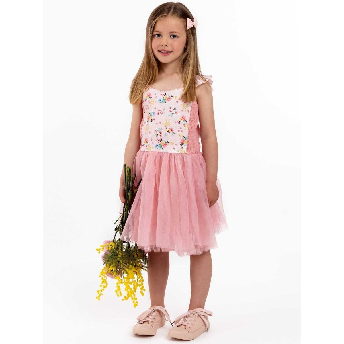 Oobi Vintage Pink Floral Belle Tutu Dress is a beautiful Belle that has a soft, 100% cotton bodice and a gentle ruching panel at the sides and sides - for stretch and an amazing fit! The dress will grow with your little one, easing gently at the ruching, for years of wear. The skirt is full, lined and twirl-approved.