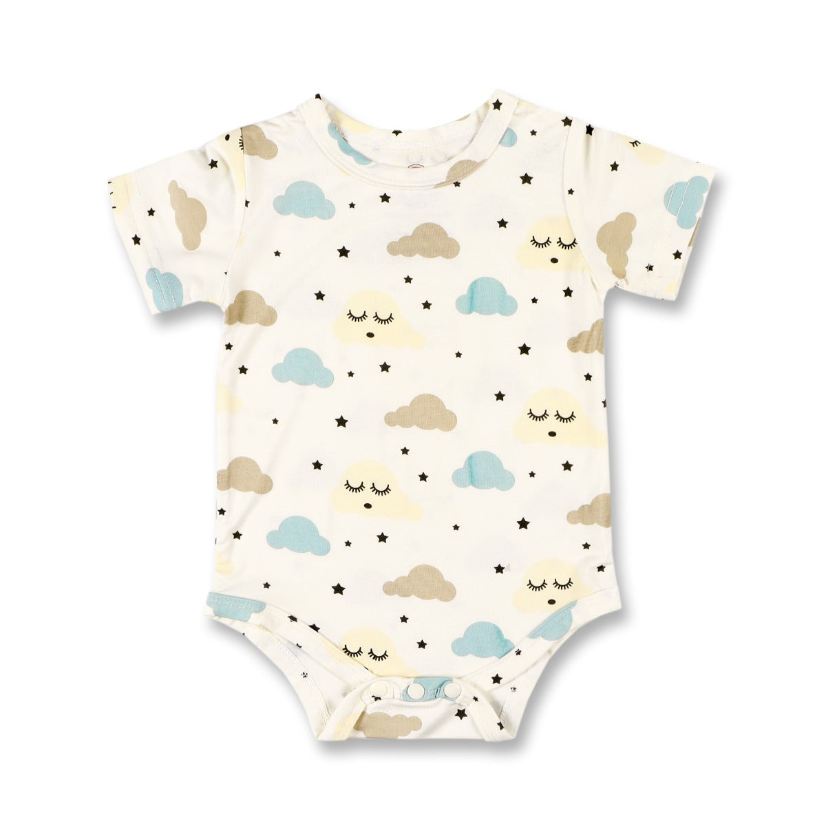A, Apple Pie Bamboo Baby Short Sleeve Onesie - Dreamy Clouds (4 Sizes)