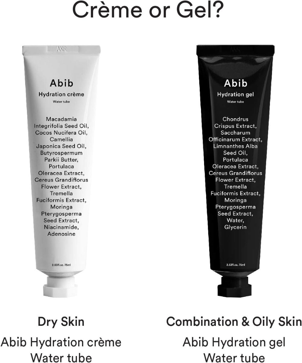 Abib Hydration Gel Water Tube is a lightweight, gel-type moisturizer designed to provide deep hydration and nourishment to the skin. Utilizing a Polymer Network System, it delivers moisture and nutrients effectively, making it suitable for those experiencing surface oiliness yet inner dryness. The non-sticky formula ensures a fresh and comfortable finish.
