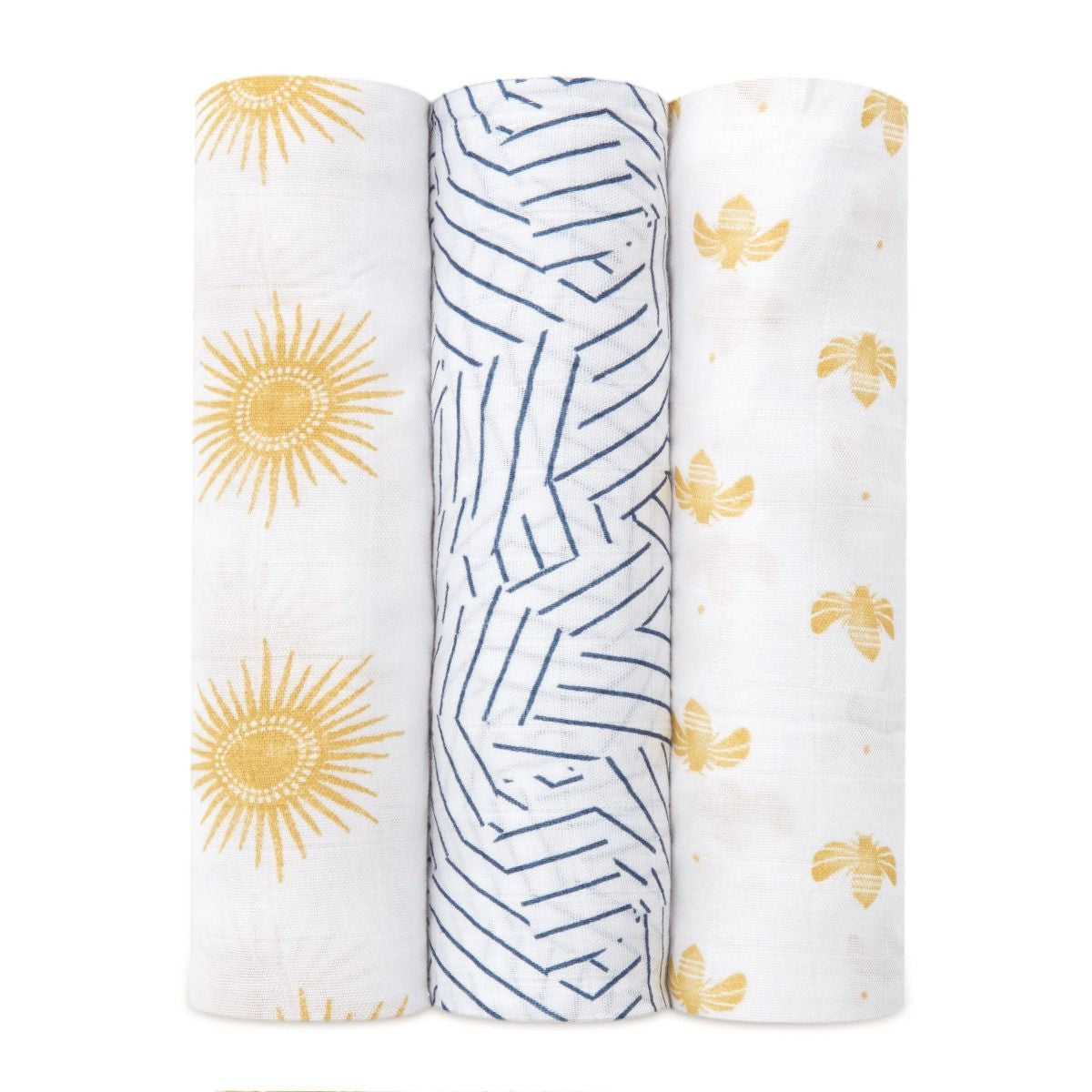 Includes:Β Pack of 3 x Aden Anais Silky Soft Swaddles