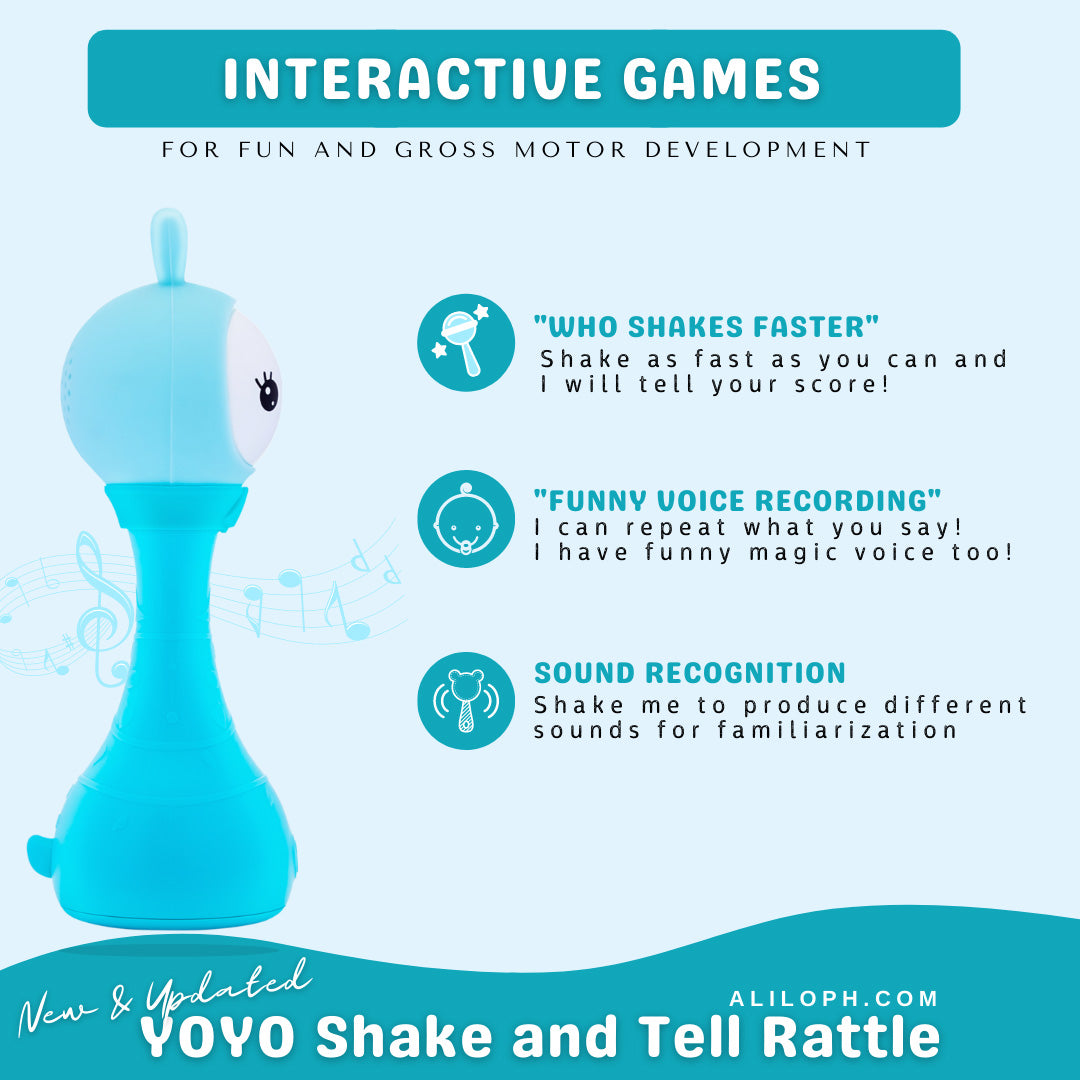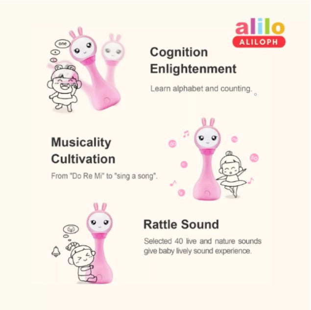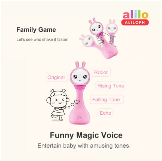 Alilo Yoyo Shake & Tell Interactive Toy is an intellectual toy for the little ones — a digital interactive bunny. Now it has become even smarter! The quick-witted bunny plays favourite tunes, tells fairy tales to the kid, performs the function of night illumination, and more! And these are not fairy tales at all. These are revolutionary technologies. Made for baby’s hands to grab and shake with ease. Through interactive engagement with this rattle, the toddler will get a head start in early education and a balanced development of mind and body muscles.