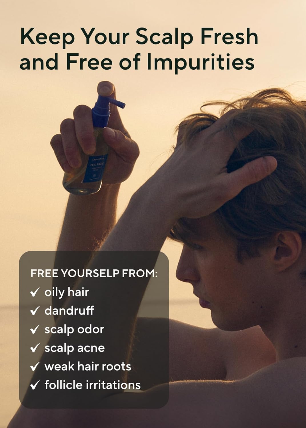 Tea tree controls production of sebum to keep your scalp feeling fresh all day.