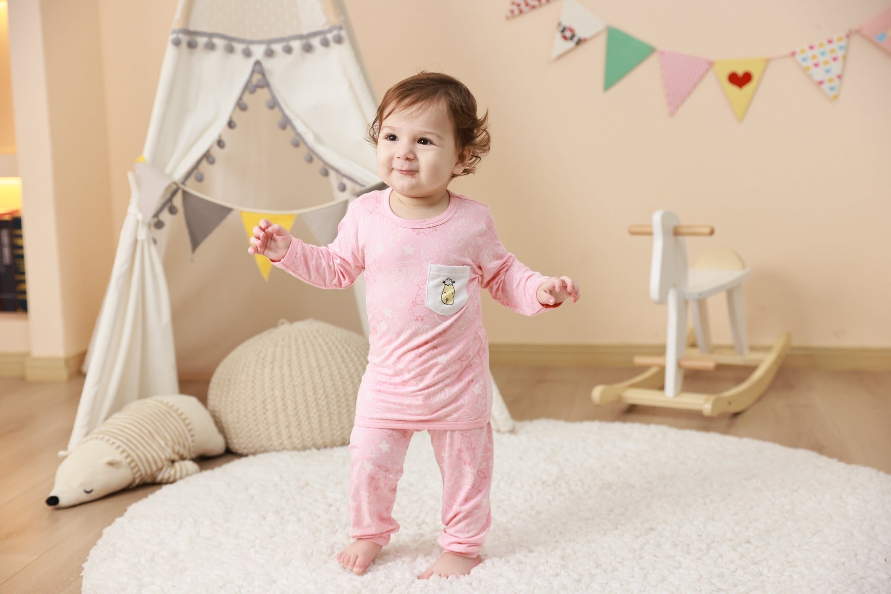 Baa Baa Sheepz Baby Long Sleeve Pyjama Set is a set of long-sleeve pyjama top and a pair of pants. Made of the softest bamboo fabrics that your baby will love, cooling and light, this set is perfect for our warm and humid climate. Bamboo pyjamas & pants are anti-bacterial, and hypoallergenic, ensuring that your baby plays and sleeps comfortably all day in a super soft fabric that protects his/her sensitive skin.