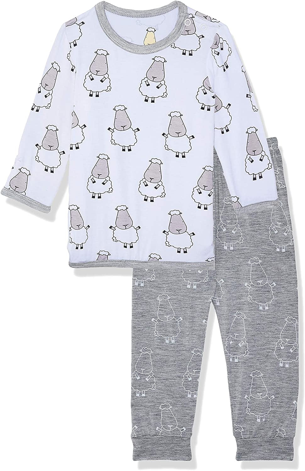 Baa Baa Sheepz Baby Long Sleeve Pyjama Set - Big Sheep White/Big Sheep Grey (5 Sizes)