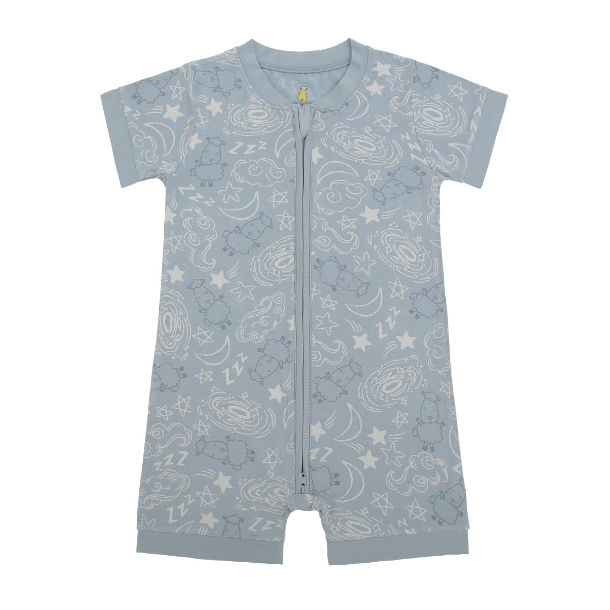 Baa Baa Sheepz Baby Short Sleeve Zip Romper - Baa Baa in the Universe Blue (4 Sizes)
