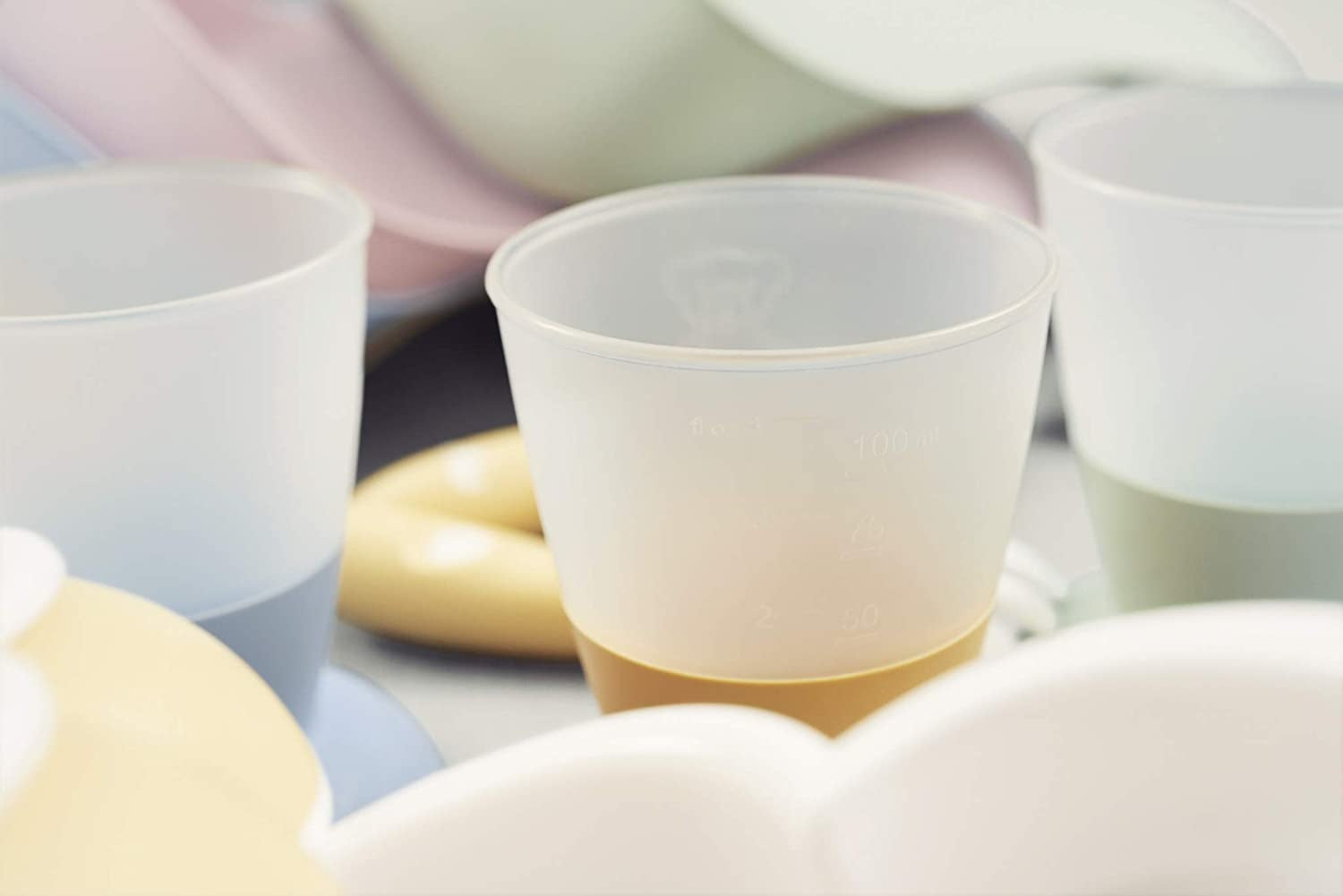 The baby cup is made of polypropylene (PP) and thermoplastic elastomers (TPE).