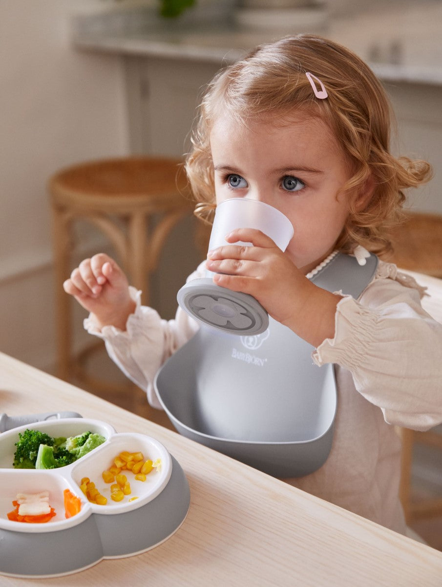 Baby Bjorn Baby Cup is a cup that makes it easy for your child to drink unaided. The baby cup’s grip-friendly material and the shape of the cup means that even the messiest little hands can hold it firmly. The wide base and low centre of gravity make the cup hard to tip over. The contents of the cup can easily be seen through the frosted plastic.