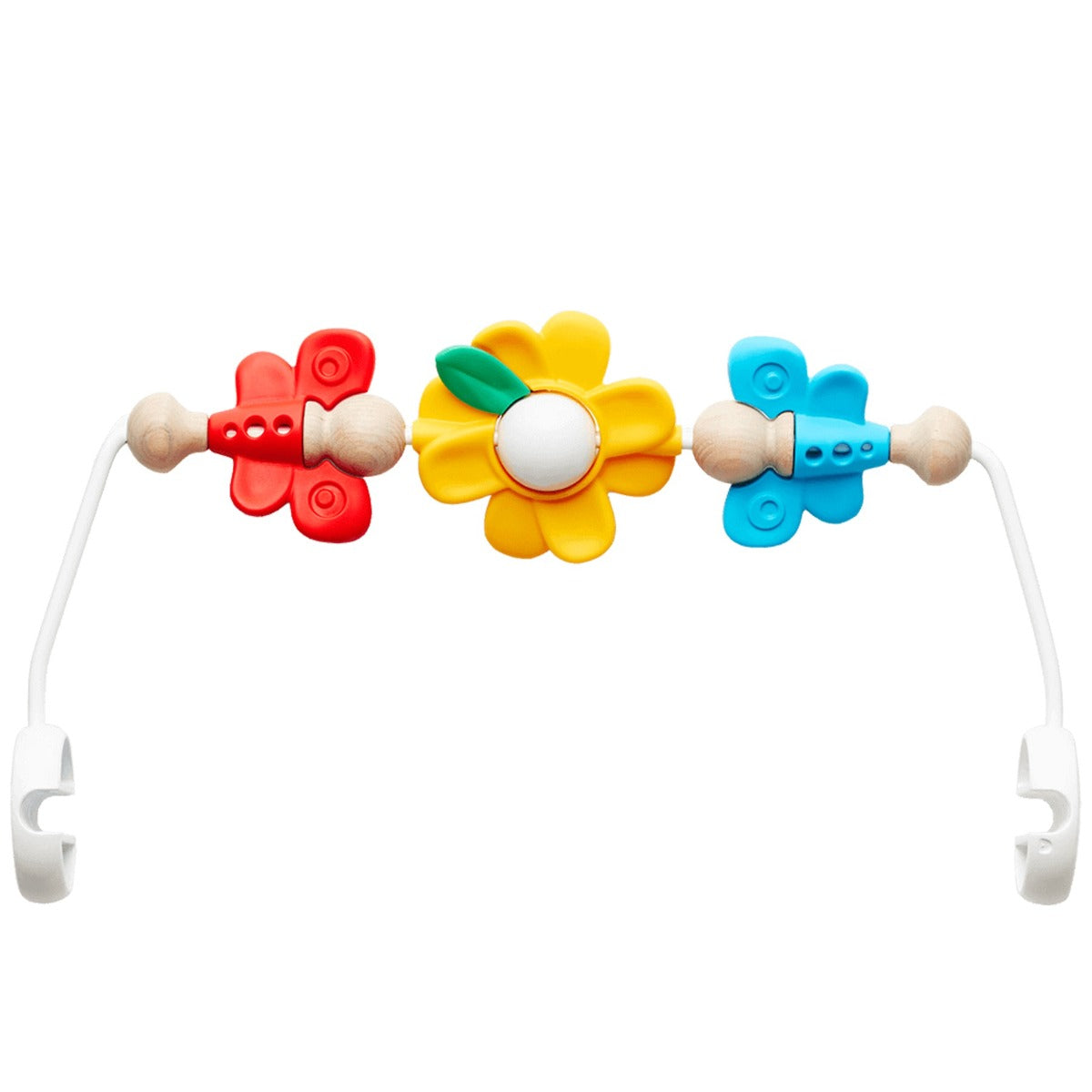 The brightly colored shapes spark your baby’s curiosity. They can spin them around and grip the wings of the butterflies and the petals of the large flower.