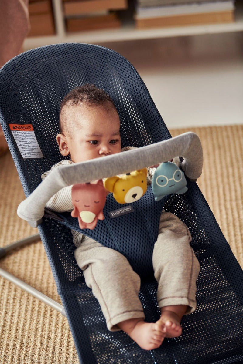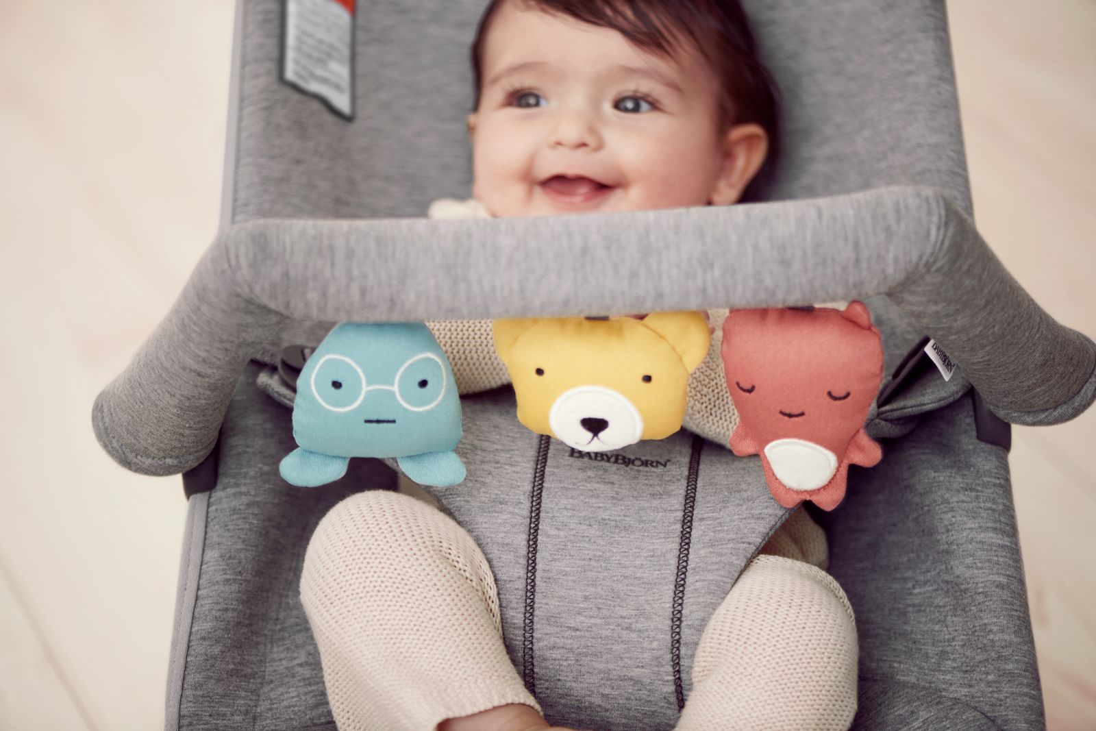 Specially designed for the BabyBjörn bouncers, the cheerful colors make it easy for baby to spot the toy, and the fun figures with bright eyes and wide smiles encourage baby to make eye contact, play and maybe even smile for the very first time.