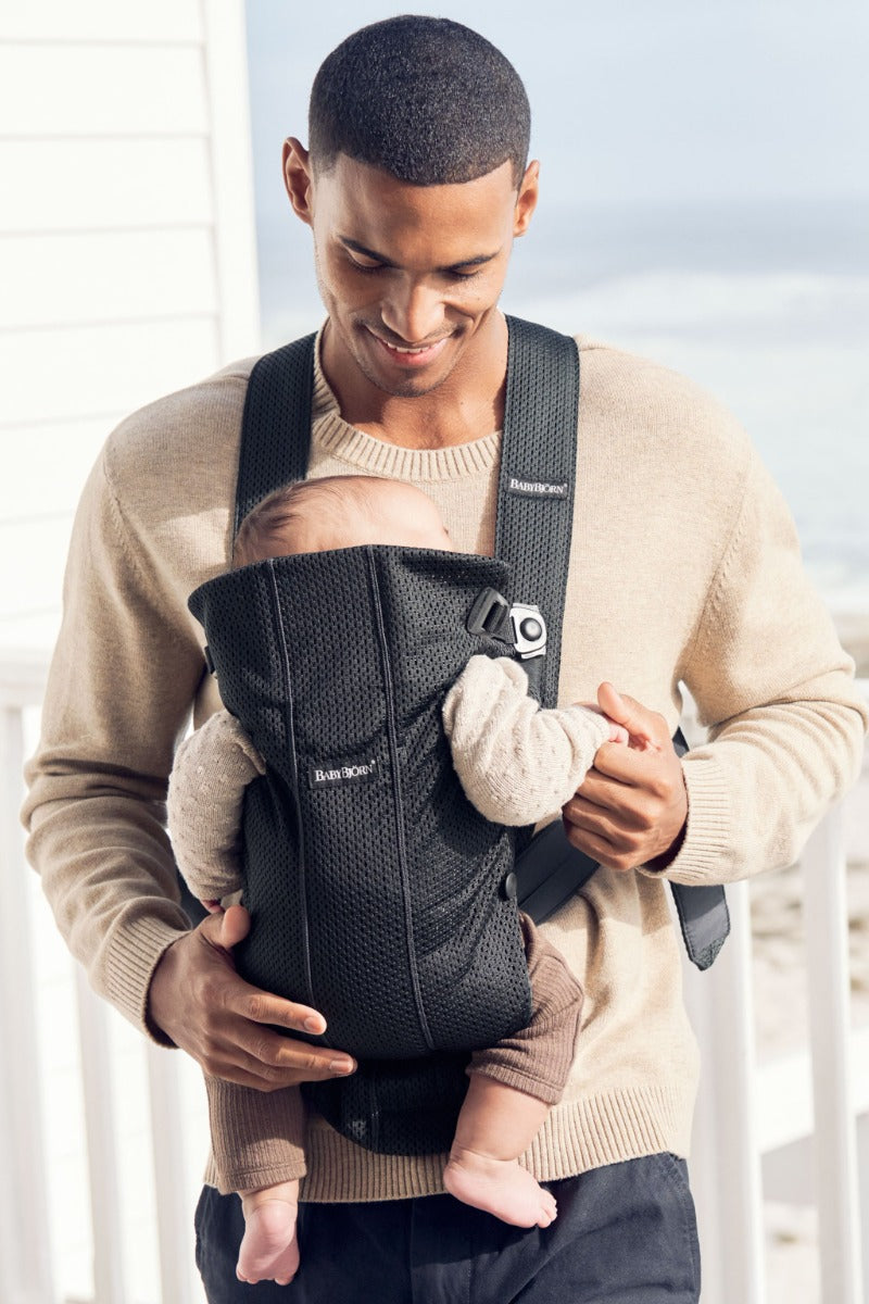 Baby Bjorn Mini Mesh Baby Carrier is a small baby carrier that is easy to use for short babywearing sessions. It’s perfect for the early months when, like all newborns, your baby needs lots of closeness around the clock. You can easily unfasten the entire front section of the baby carrier to lift out your sleeping baby. The soft fabrics gently hug your baby’s back, legs and hips, and provide good support. You can check your newborn’s position and the natural C-curve of their back with your hands through the fabric.