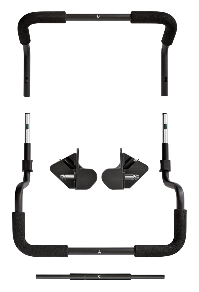 - Prop your car seat on top of the adapter and support bar (it will NOT CLICK IN)