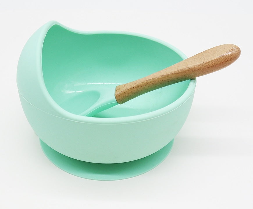 Biomom Baby Silicone Bowl with Spoon is a baby feeding bowl made of silicone. It has a raised lip on one side of the bowl so that it is easier for parents to hold the bowl when feeding baby. The raised lip allows a place for the adult's thumb to rest, so that the bowl does not slip from the hand and fall, reducing risks of messes. It also has a suction base and comes with a silicone baby feeding spoon, so that toddlers can self-feed independently, too.