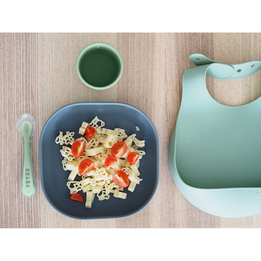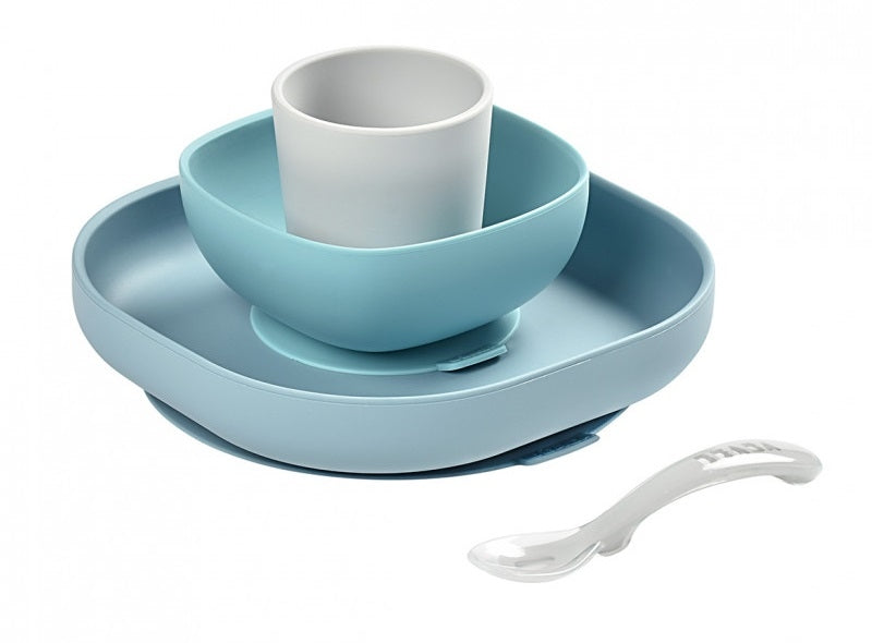 Beaba Silicone Meal Set is a set of plate and bowl that feature suction bottoms (so more food lands in your little one’s belly instead of on the floor or in the dog’s belly!), and a cup and silicone spoon that are ergonomically designed to fit perfectly in little hands. Our Silicone Suction Meal Set is a mealtime essential for every family.