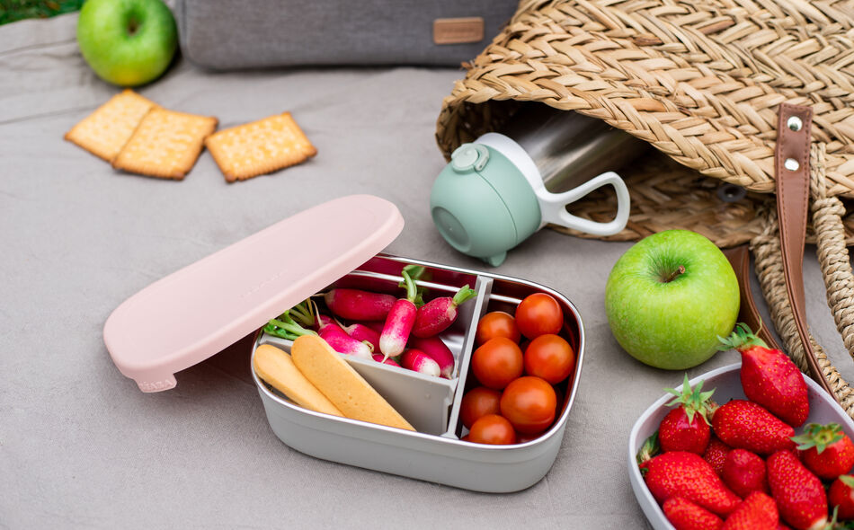 Beaba Stainless Steel Lunch Box is a light and robust stainless steel box with a protective cover and silicone lid, ideal for carrying small gourmets’ meals or snacks. The perfect on-the-go solution for carrying your child’s meals. Pack them lunch, snacks, and more in this durable, eco-friendly container. Easily divide food with the removable and adjustable silicone dividers – adjust portions or keep food from touching! Equipped with a grippy non-slip silicone lid that keeps the box from sliding.