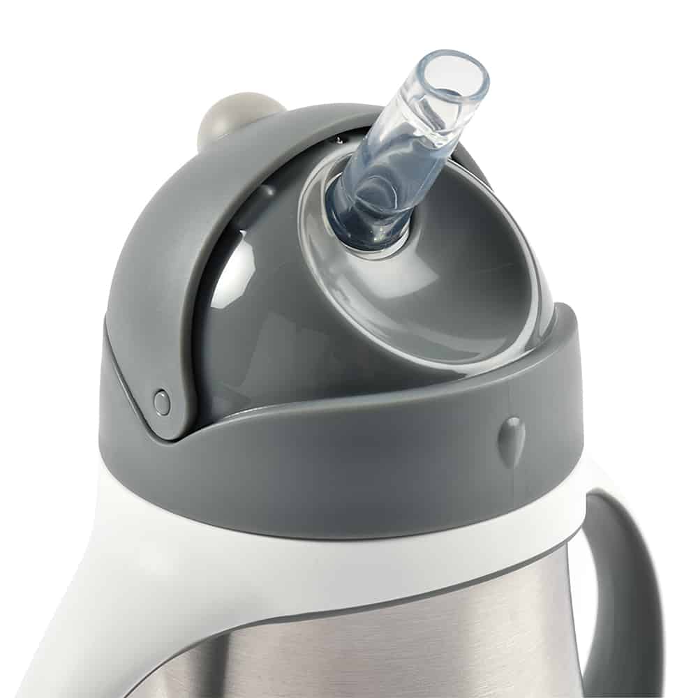 Beaba Stainless Steel Straw Cup is a slide-open double-walled stainless steel straw cup which enables young children, as from 8 months, to learn to drink on their own. Solid and equipped with a double wall for insulation, it is ideal for use on the go. It offers some light insulation, helping the beverage stay warm or cold for a little longer so that kids get to enjoy cool or warm drinks even when on the go. In addition, there is less temperature conduction to the surface of the bottle, making it more comfortable to handle for kids.