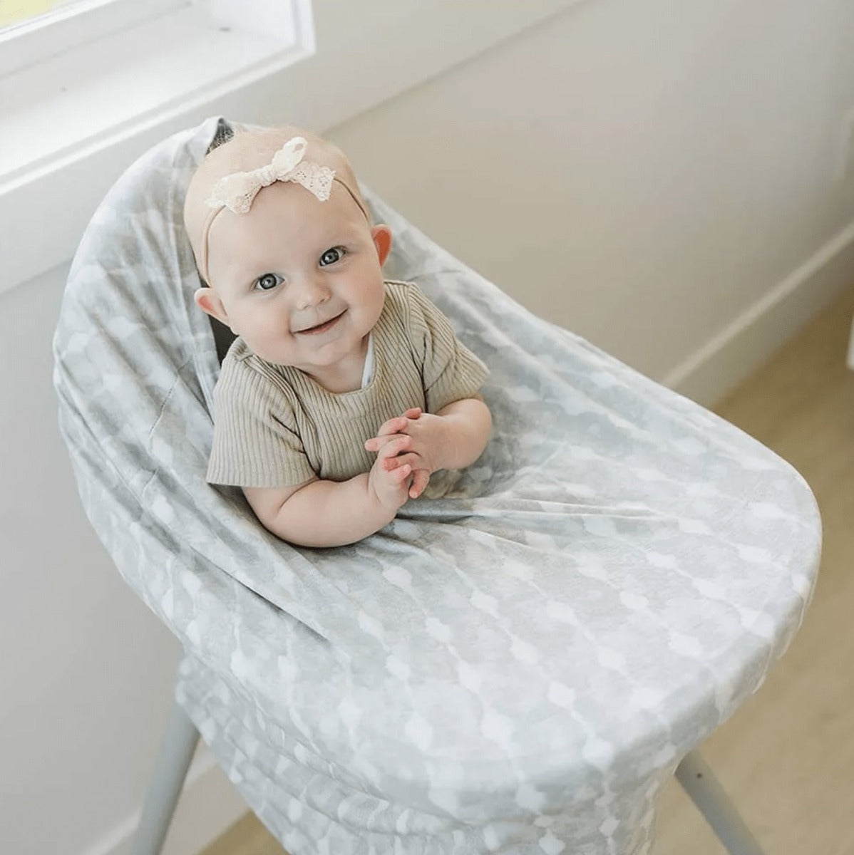 Bebe Au Lait 5 in 1 Nursing Cover is a nursing cover that can be used in 5 ways. Easily convert this jersey knit nursing cover into an infinity scarf, stretchy car seat cover, carrier cover and shopping cart cover. These 5-in-1 Covers are the next addition to your diaper bag that will last long after baby is done nursing.