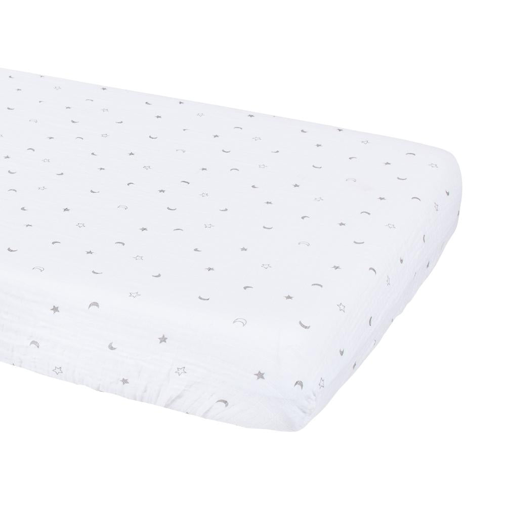 Bebe Au Lait Classic Muslin Fitted Crib Sheet is a fitted sheet for crib mattresses. Baby will drift off to dreamland on this soft muslin crib sheet and be perfectly cozy all night long. Get a few to change around the sheets so not only can you wash the spare, baby's mattress get a change of look, too!