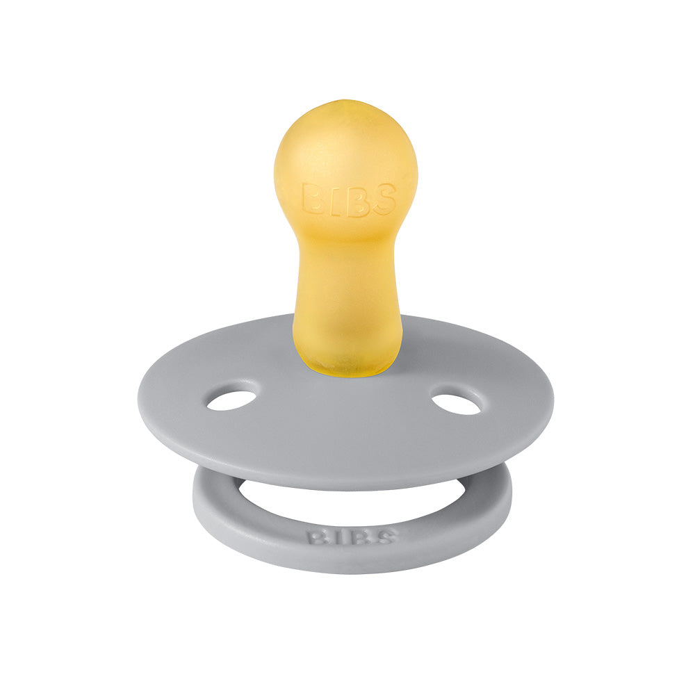 Colour is the original BIBS pacifier and has been on the market for over 40 years. It has the signature round BIBS shield with three vent holes and round BIBS engraved handle ring. The shield is carefully designed to curve away from the sensitive and delicate skin around the baby’s mouth to prevent moisture build-up. The shield comes in one size no matter the nipple size. Colour is available in natural rubber latex in sizes 1, 2, and 3.