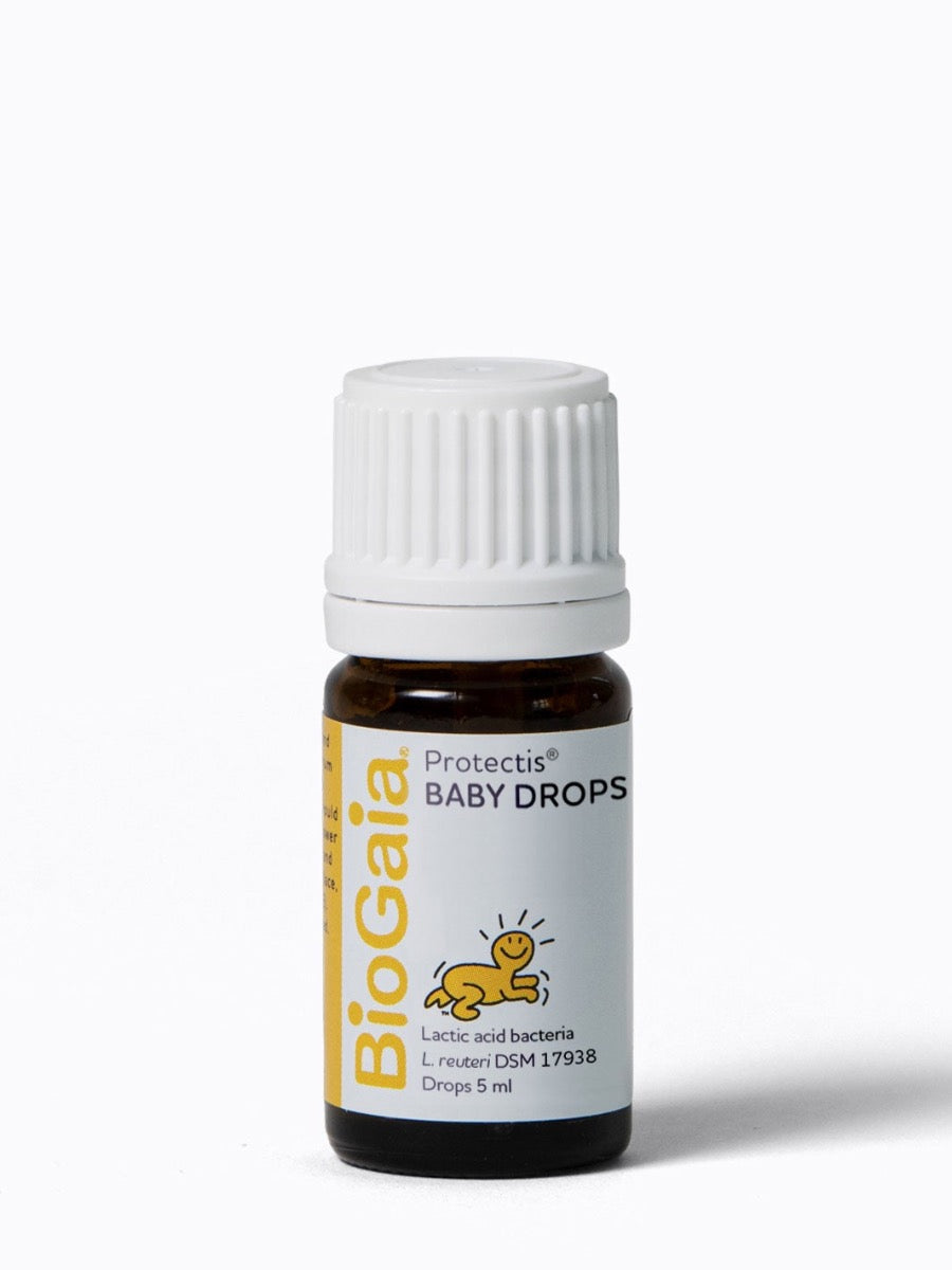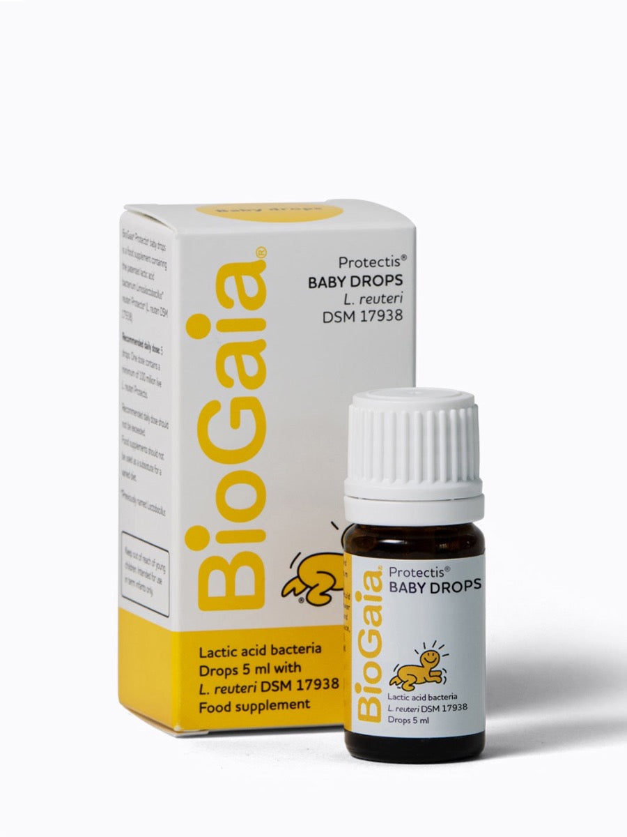 BioGaia Protectis Baby Probiotics Drops is a food supplement for babies containing the patented lactic acid bacterium Lactobacillus reuteri Protectis (L. reuteri DSM 17938) that helps the good microorganisms restore a natural balance in the gut. Because L. reuteri Protectis naturally colonizes humans it has a strong adaptation to persist and interact with humans.