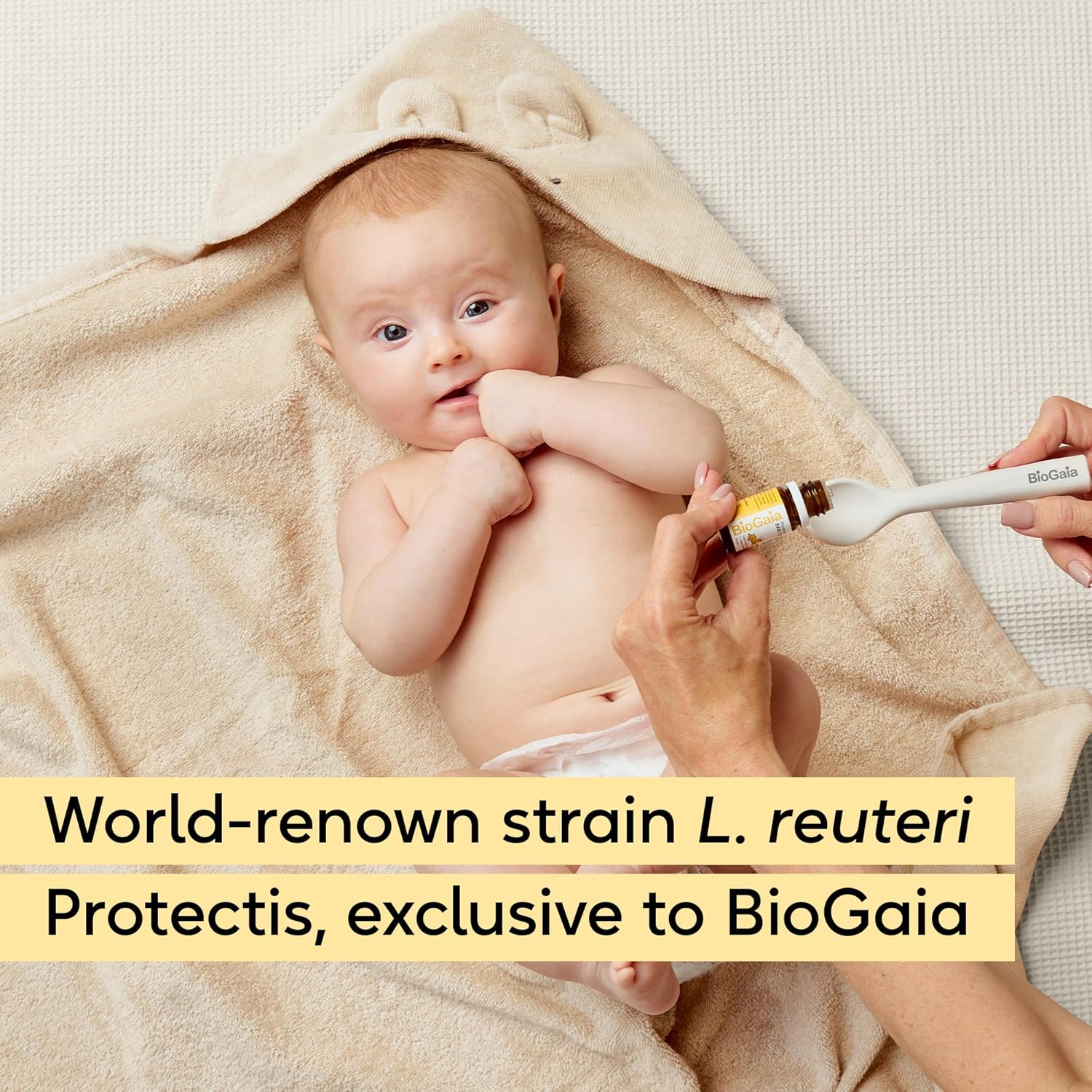 BioGaia Protectis Baby Probiotics Drops is a food supplement for babies containing the patented lactic acid bacterium Lactobacillus reuteri Protectis (L. reuteri DSM 17938) that helps the good microorganisms restore a natural balance in the gut. Because L. reuteri Protectis naturally colonizes humans it has a strong adaptation to persist and interact with humans.