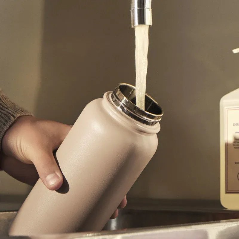 - Hand wash: Wash the bottle with warm, soapy water and a soft sponge or dishcloth. Avoid using harsh detergents, abrasive scrubbers, or bleach, as these can damage the finish.