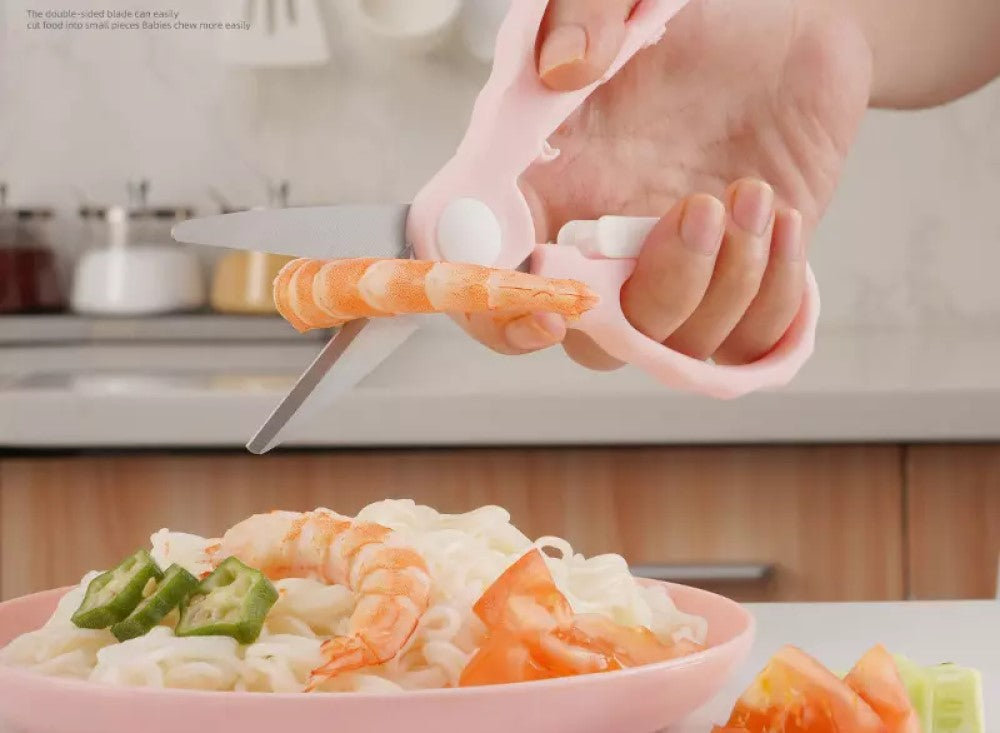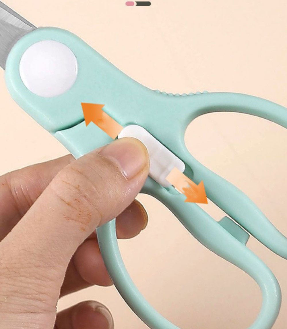 Biomom Stainless Steel Baby Food Scissors is a pair of children's stainless steel food scissors that is perfect for cutting up food such as noodles, vegetables and tender meat into smaller, bite-sized pieces so your little ones can consume them easily. This pair of scissors is perfect on the go, as it comes with a hard case and blade cover. Gets the job done in seconds! Say goodbye to trying the struggle of cutting food into smaller pieces with a spoon or fork when dining out. To make it even safer around kids, simply lock the scissor so your child will not be able to open the scissors/hurt themselves on accidents.