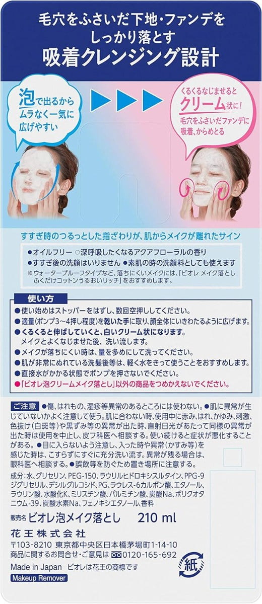 Biore Whip Foam to Cream Speedy Makeup Remover, 210ml (Exp 05/27)