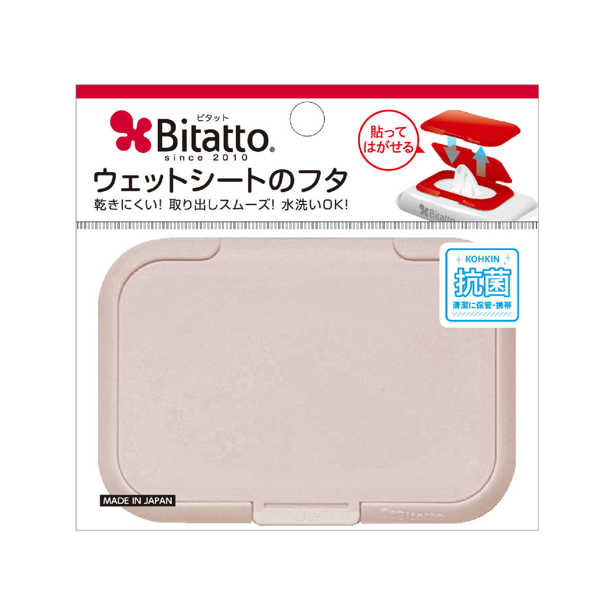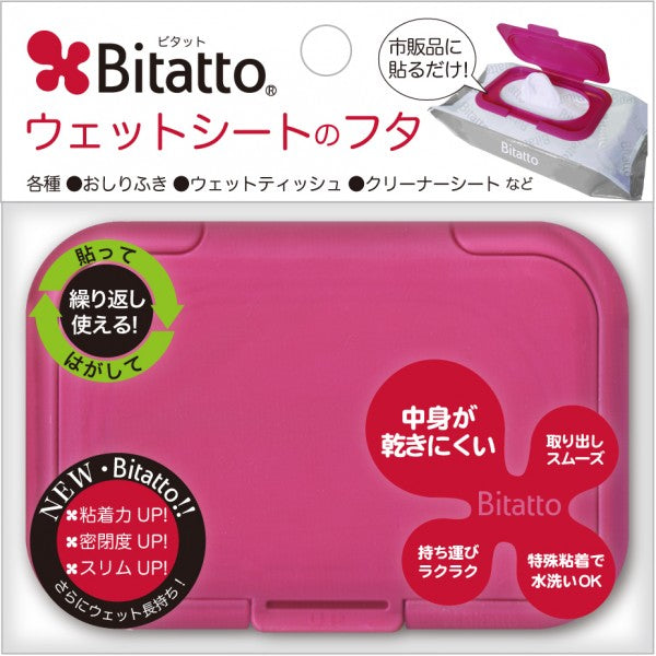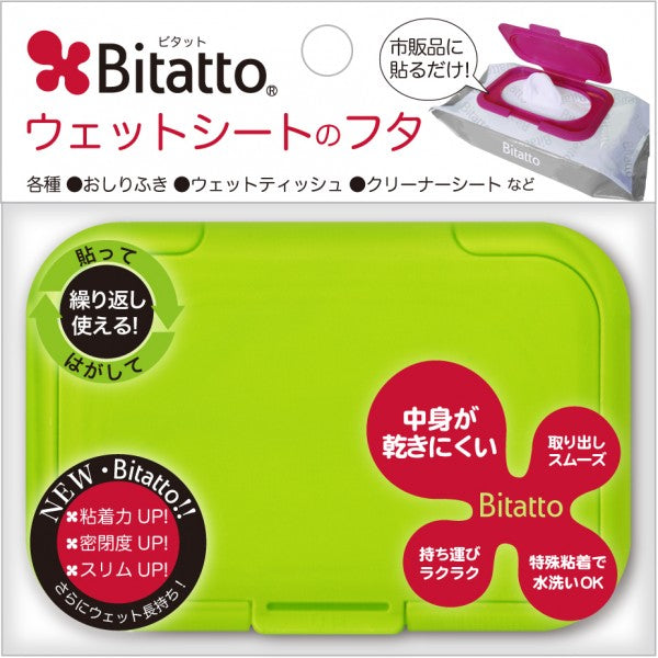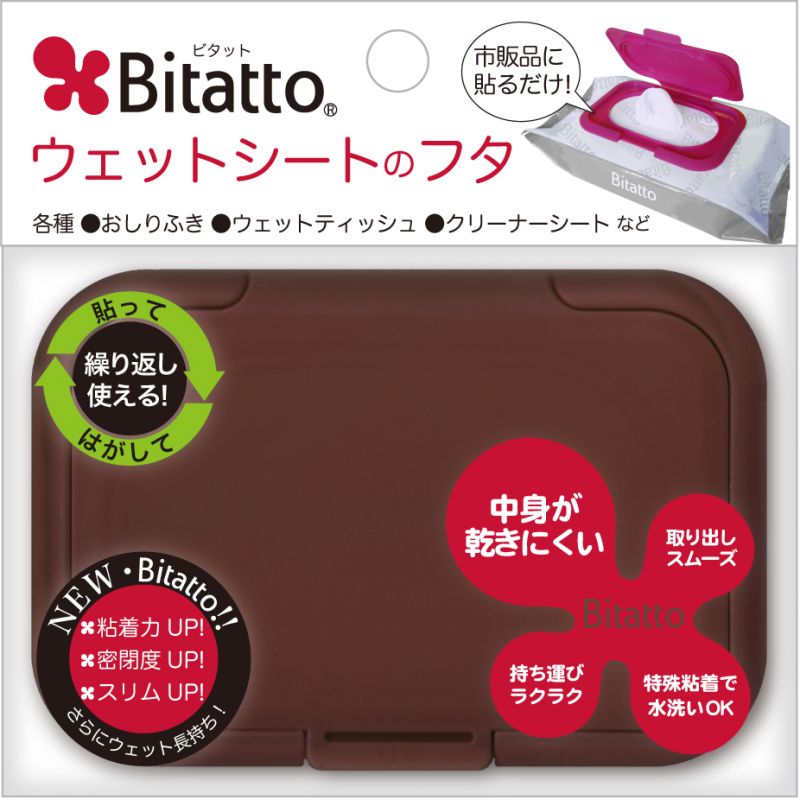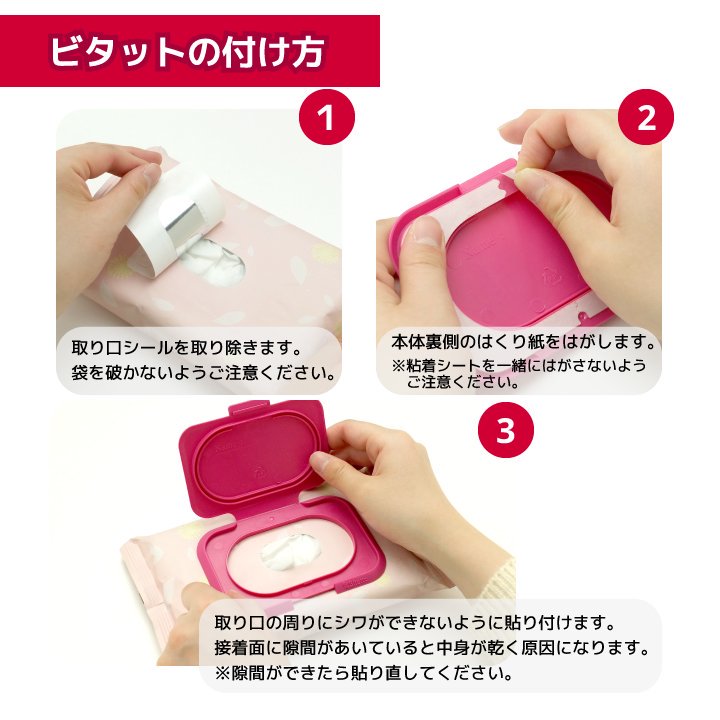 Just peel off the resealable label on a wet wipes package and apply Bitatto! When the wet wipes are finished, remove Bitatto and apply to another wet wipes.