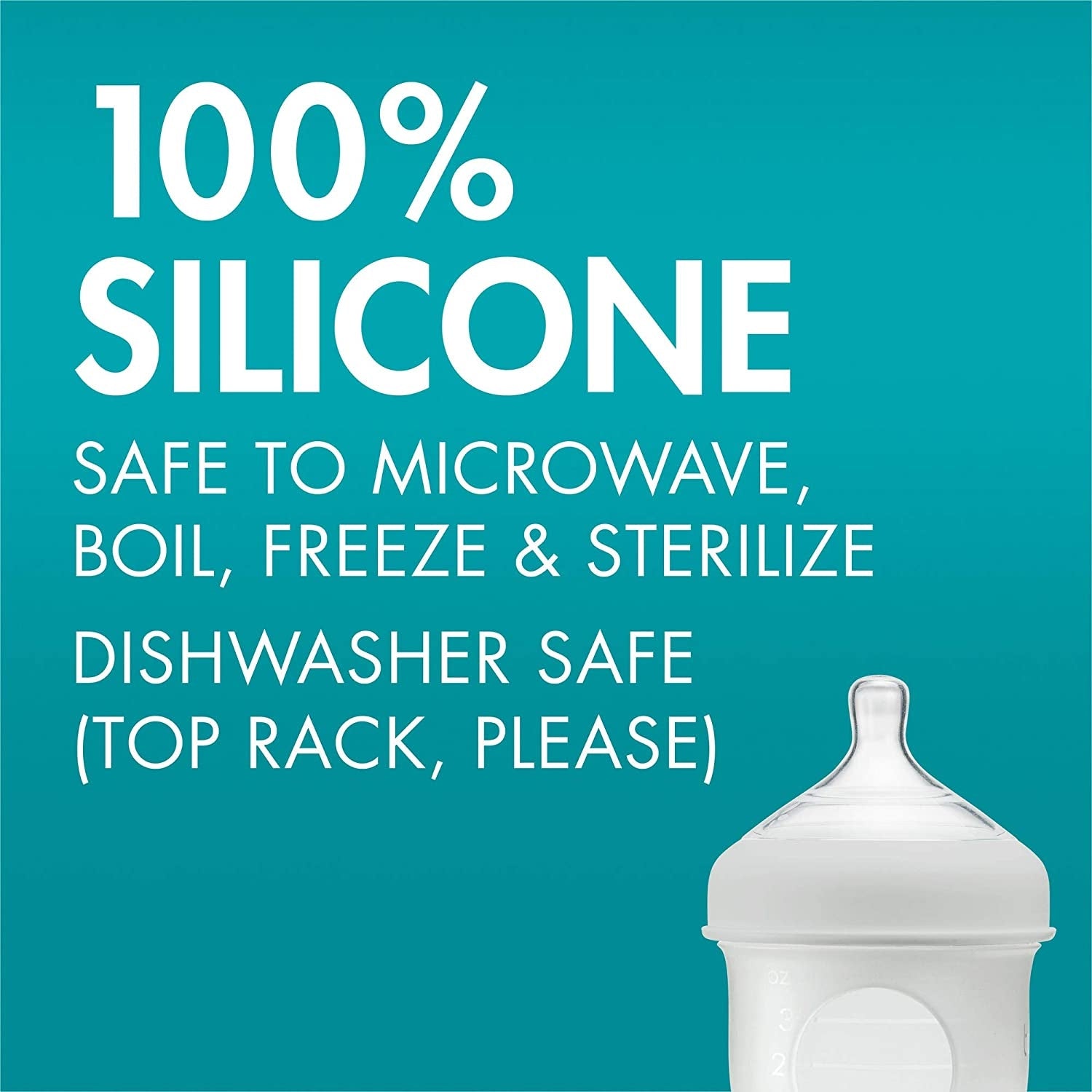 Boon Nursh Silicone Pouch Bottle is a revolutionary air-free feeding bottle design featuring a 100% silicone pouch that collapses as your little one drinks, squeezing out the nasty gas-inducing air that causes colic. No straws, vents or valves here—so it’s a snap to clean and assemble. The silicone can even be boiled, sterilized, microwaved, and frozen.