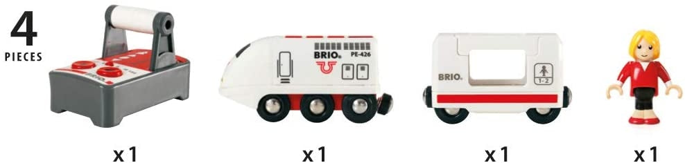 Brio Remote Control Travel Train is a passenger train with a remote control so you can control it anyway you want. Take control and drive safely, you have a passenger onboard! The unique controller has easy to use reverse and stop functions as well as two different forward speeds. Press the buttons for light and sound effects. Train is controllable also with buttons on engine.