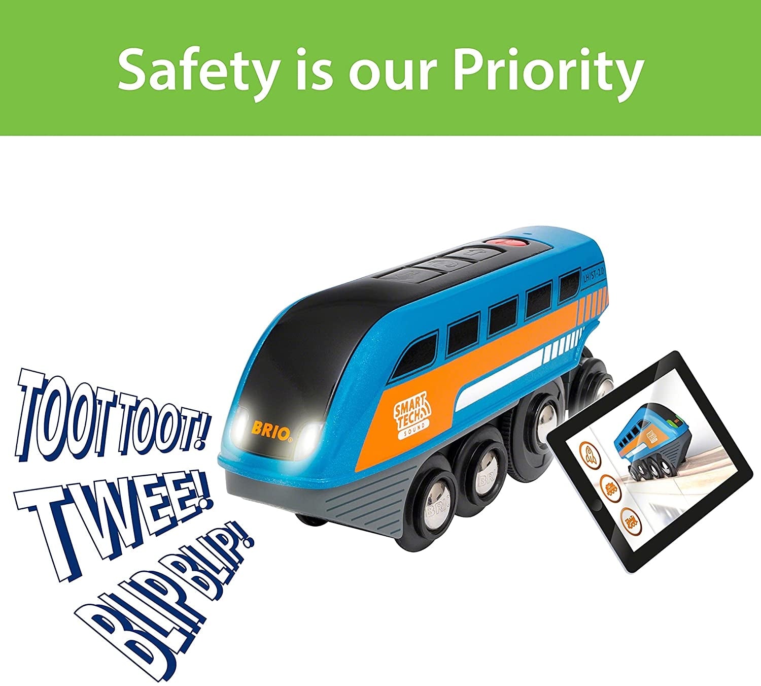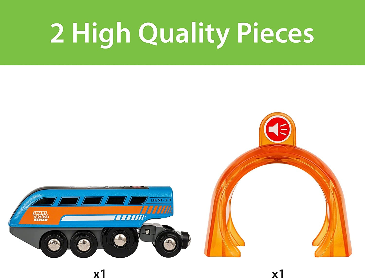 Brio Smart Tech Sound Record & Play Engine is an interactive toy train that is battery-powered and packed full of playful technology, it allows you or your child to record your own sounds and the train will play it as it passes through the Sound Action tunnel. The added Smart Tech Sound technology allows the engine to communicate with its surroundings, automatically responding to Smart Tech accessories with various train actions like multicolor lights, motion, and sounds that enhance the imaginative play. An exciting addition to your wooden train set. Keep expanding your BRIO world with these cool accessories!