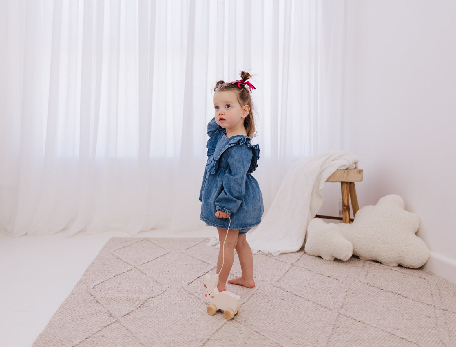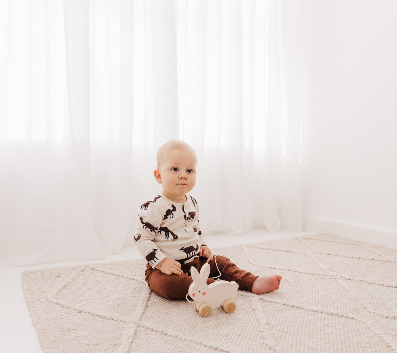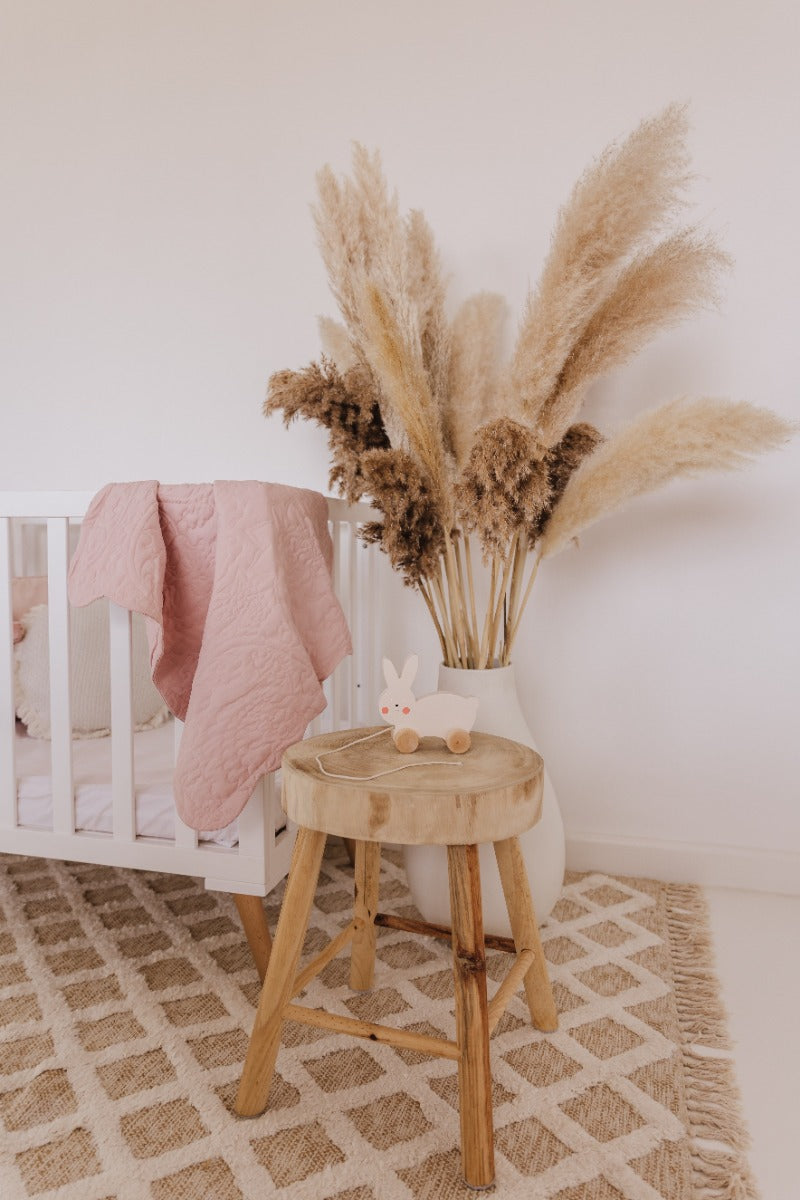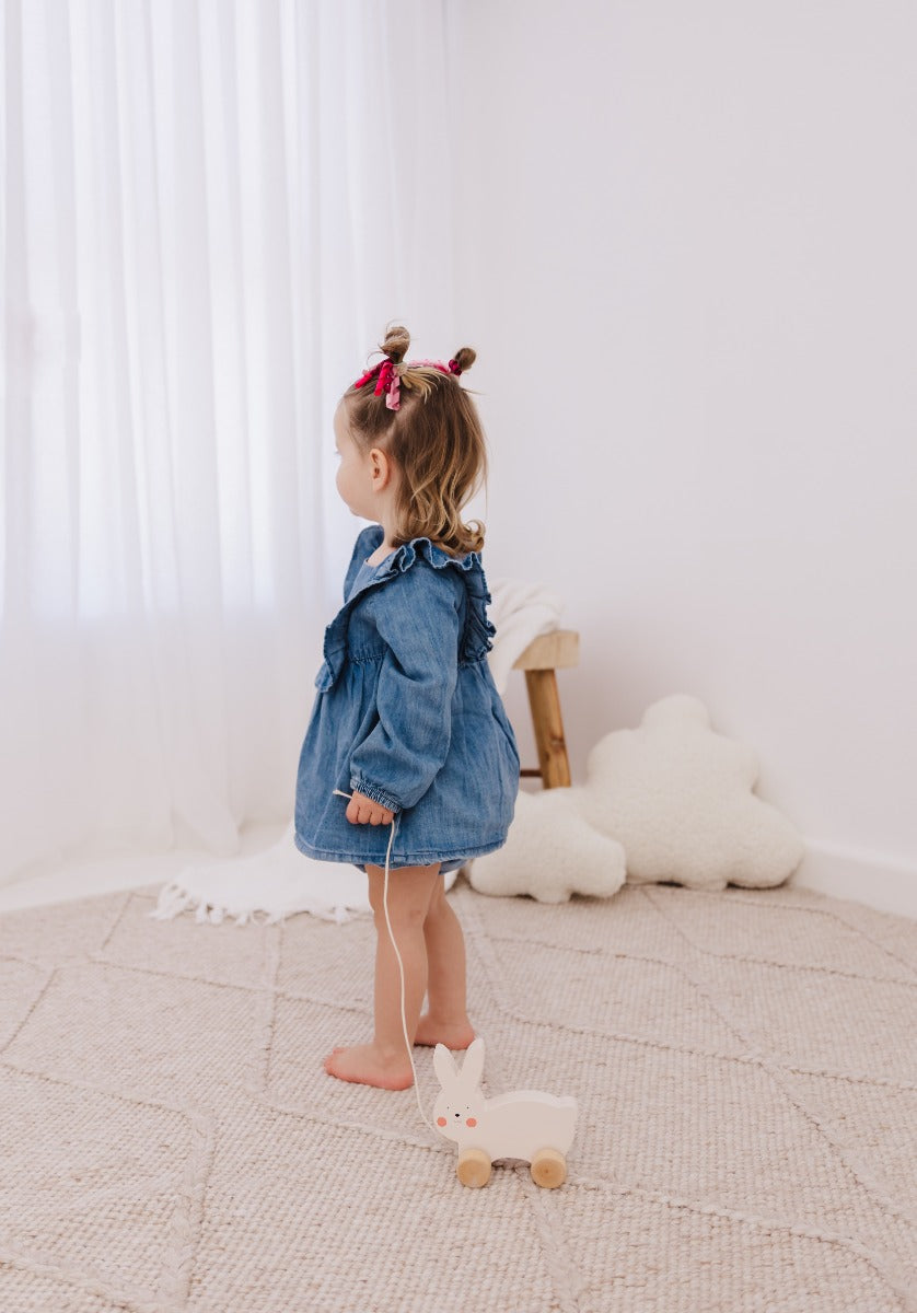 Bubble Wooden Rabbit Pull Along Toy is a charming pink, pull-along toy embodying timeless simplicity. This timeless treasure is designed to capture the hearts of both children and parents alike.
