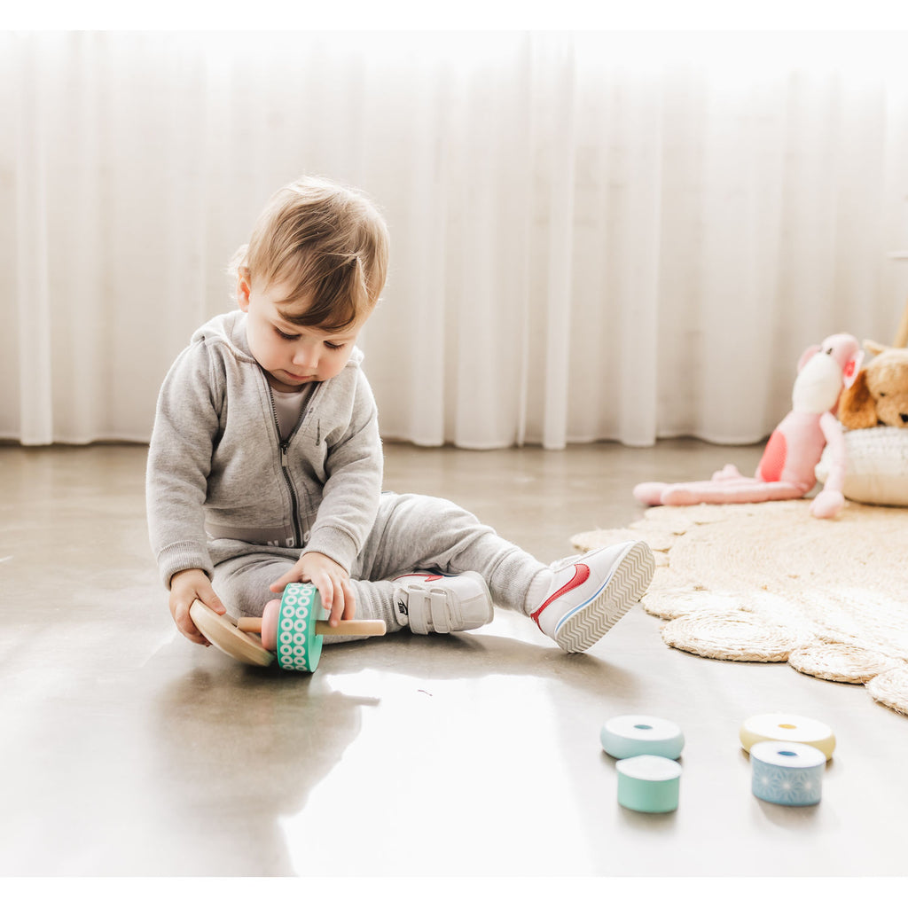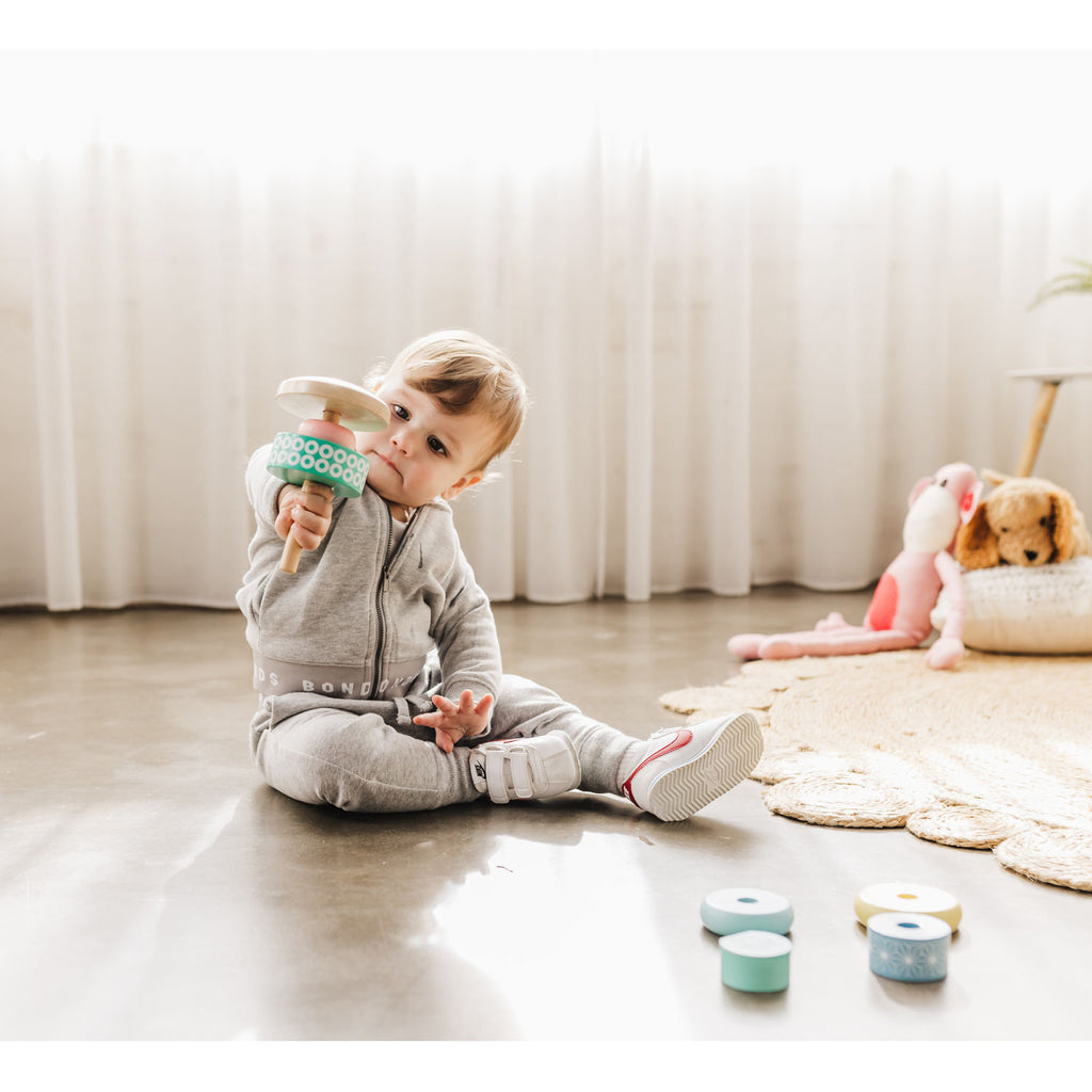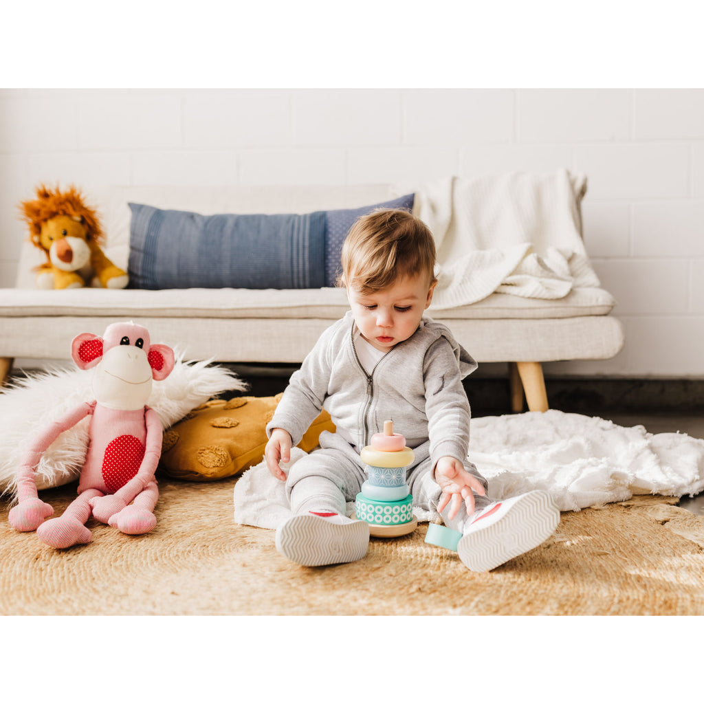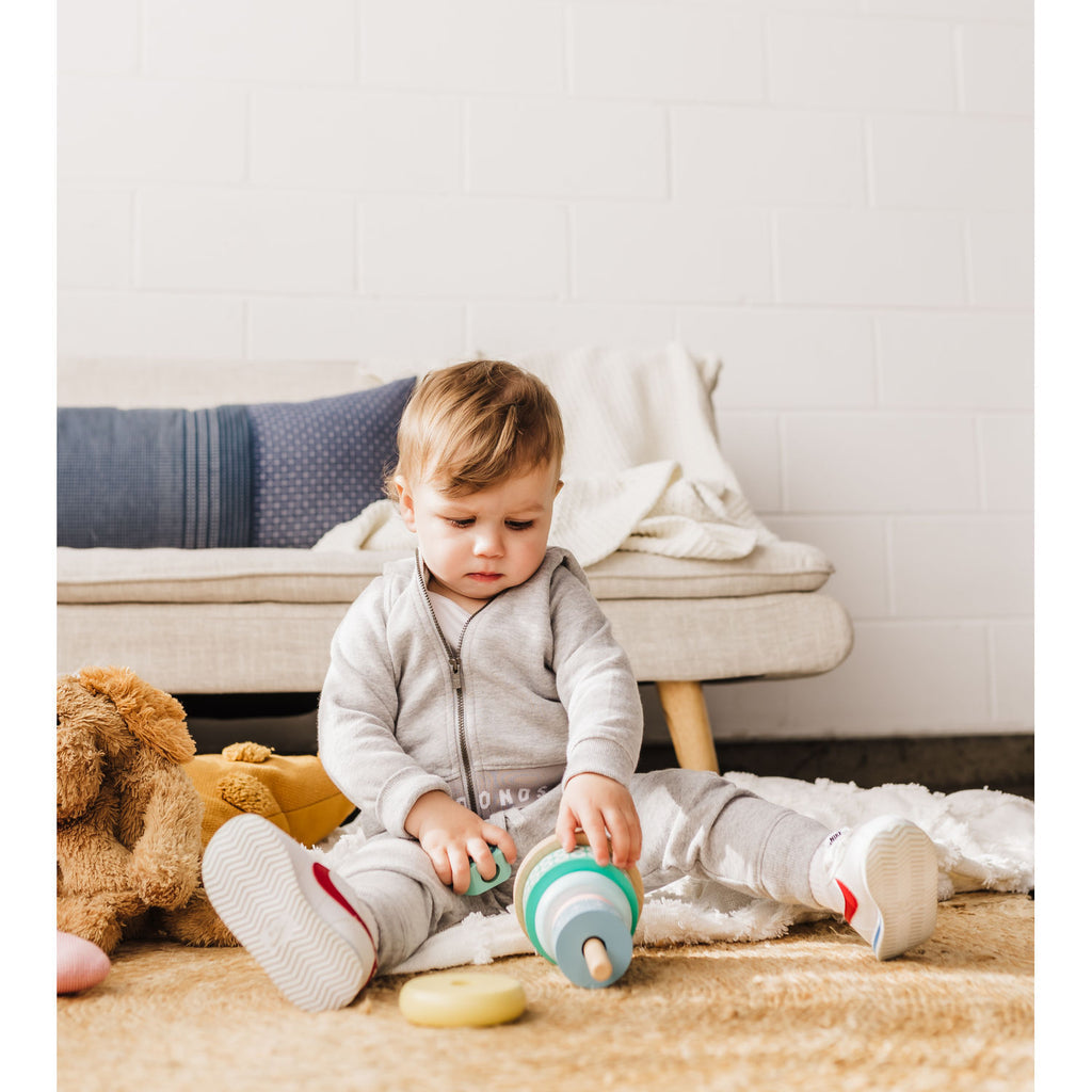 Bubble Wooden Stacking Rings is a beautiful and modern take on a traditional early learning toy, and definitely a must-have for every nursery or playroom! Older toddlers will enjoy stacking the rings, while younger babies will be engaged by the bright colours and chunky wood shapes. Our stacking set has five brightly coloured rings topped with a cute little bear. An additional feature is the wobbly base, which adds a slightly challenging and fun element for your little one stacking on the pole! This toys helps to develop hand-eye coordination and fine motor skills while learning about colors the basics of counting!