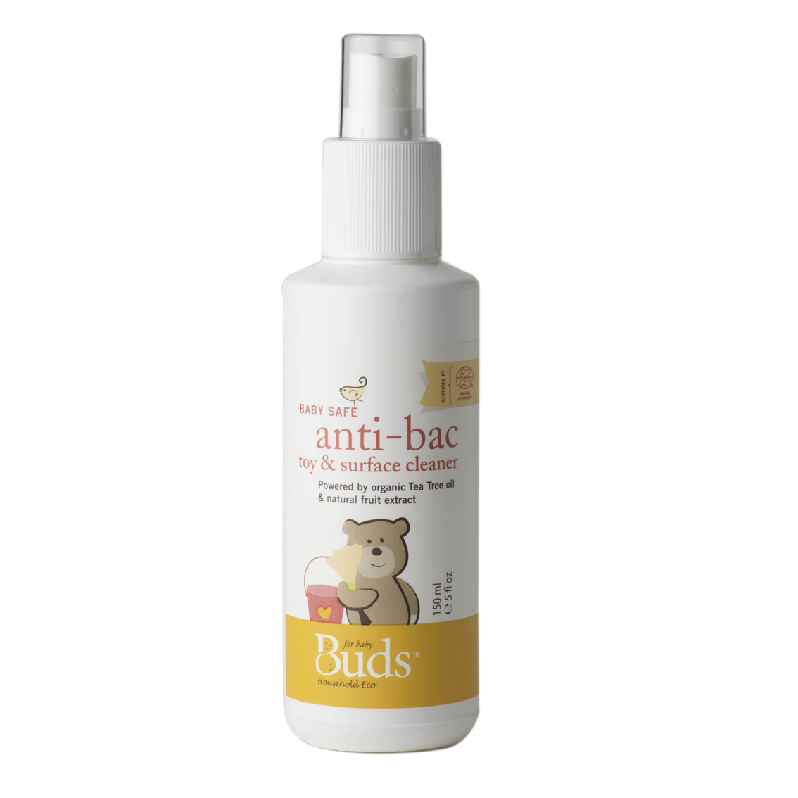 Buds Organics Baby Safe Anti-Bacteria Toy & Surface Cleaner is a spray cleaner for toys and surfaces. Spray and wipe, no washes required! Here's a really convenient and safe way to clean toys and surfaces that your baby will come into contact with. Good for the environment and safe for baby, this cleaner cleans thoroughly with a simple spray.