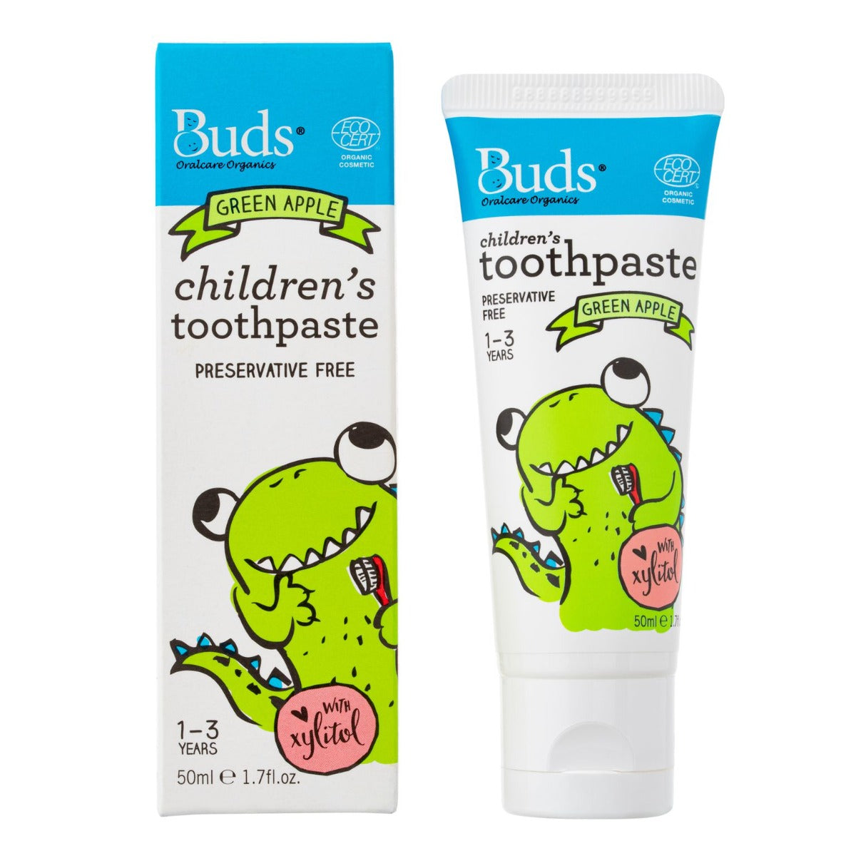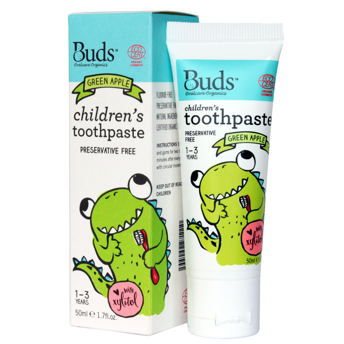 Buds Organics Children's Toothpaste with Xylitol - Green Apple, 50ml - exp 03/28
