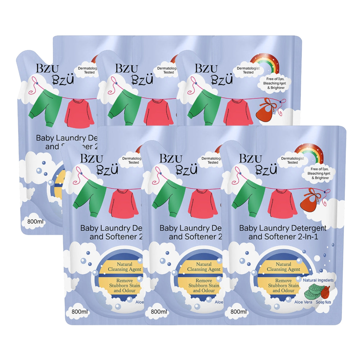 [Bundle] BZU BZU Baby Laundry Detergent & Softener 2-in-1, 6 x 800ml Refill (Exp 07/27)