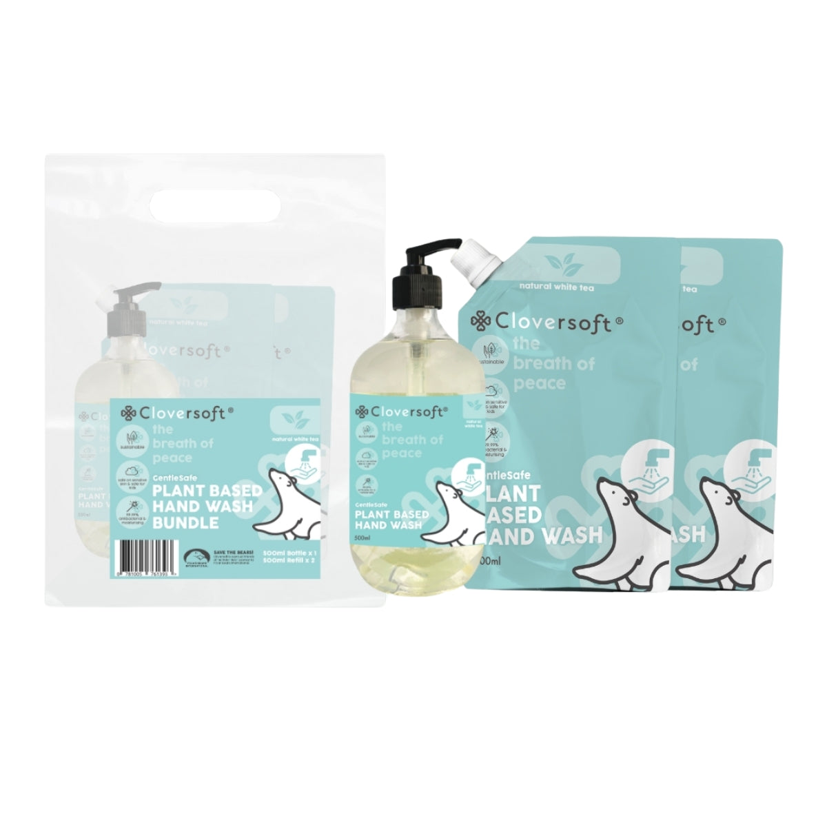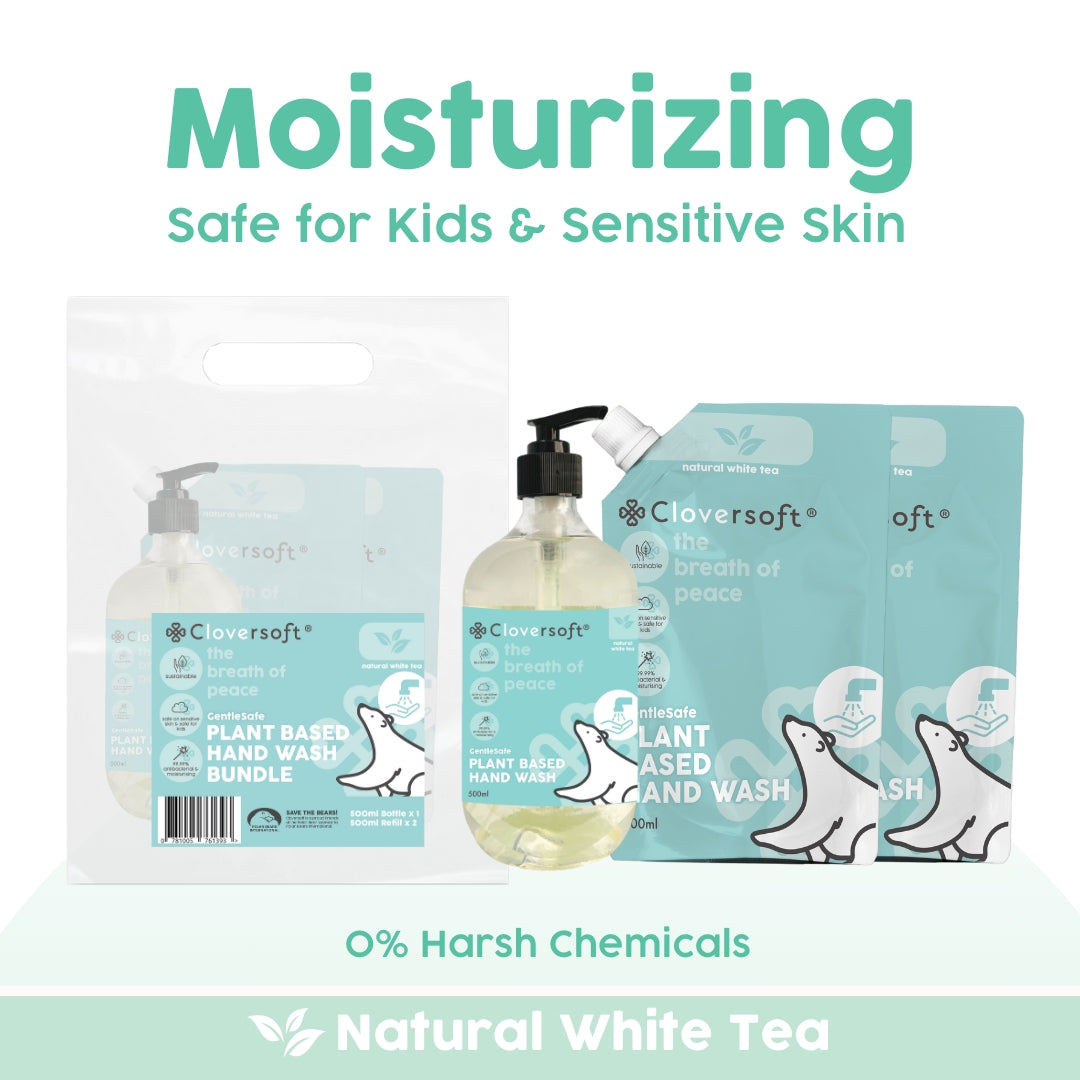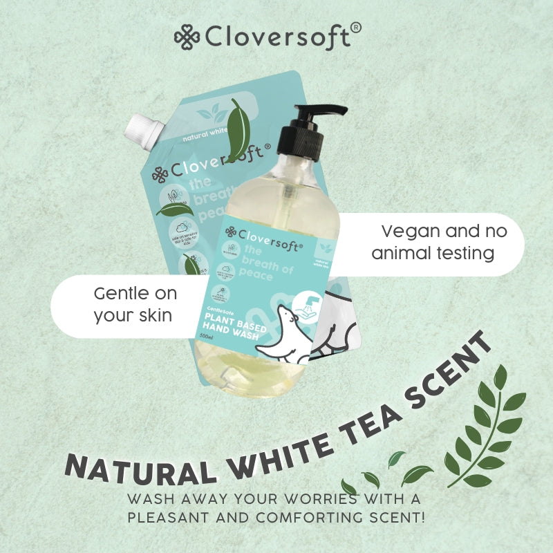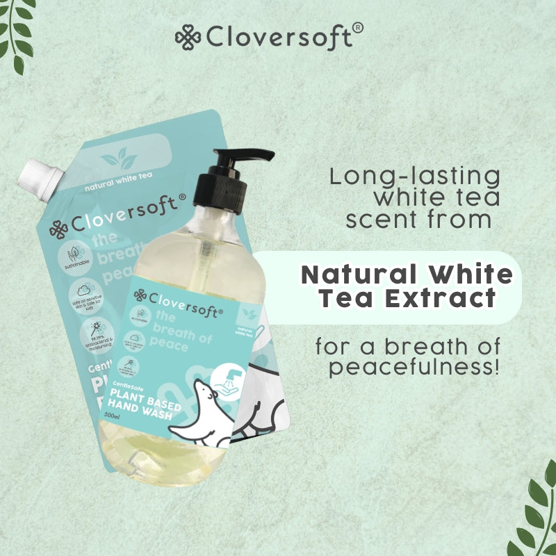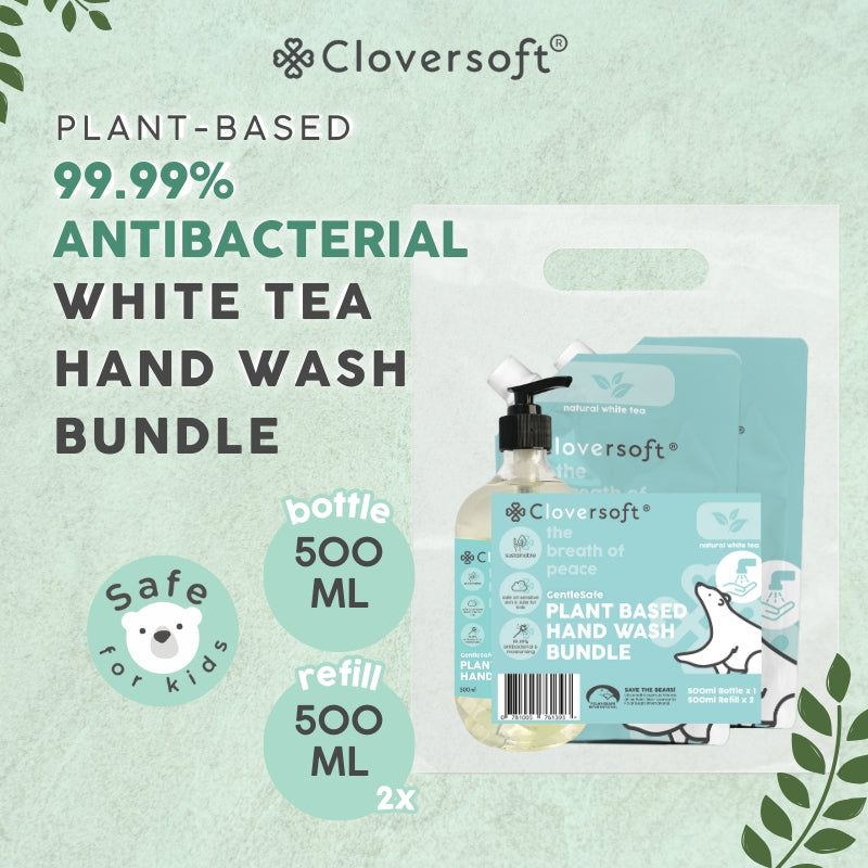 [Bundle] Cloversoft Plant-Based 99.99% Antibacterial Gel Hand Wash 500ml (White Tea) Bundle – 2 Refills + 1 Bottle (Exp 07/27)