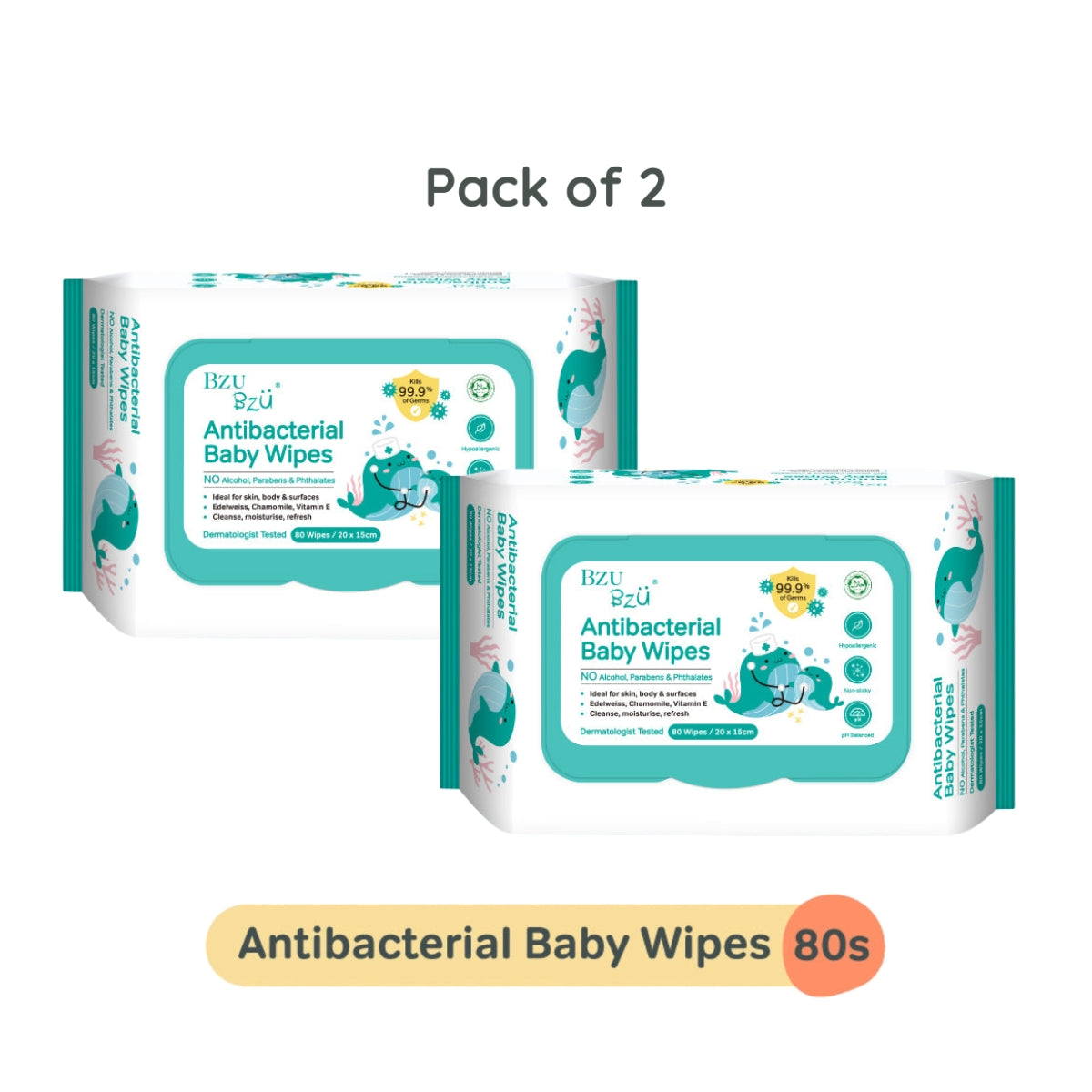 BZU BZU New Antibacterial Baby Wipes, 2 x 80s (Exp 10/26)