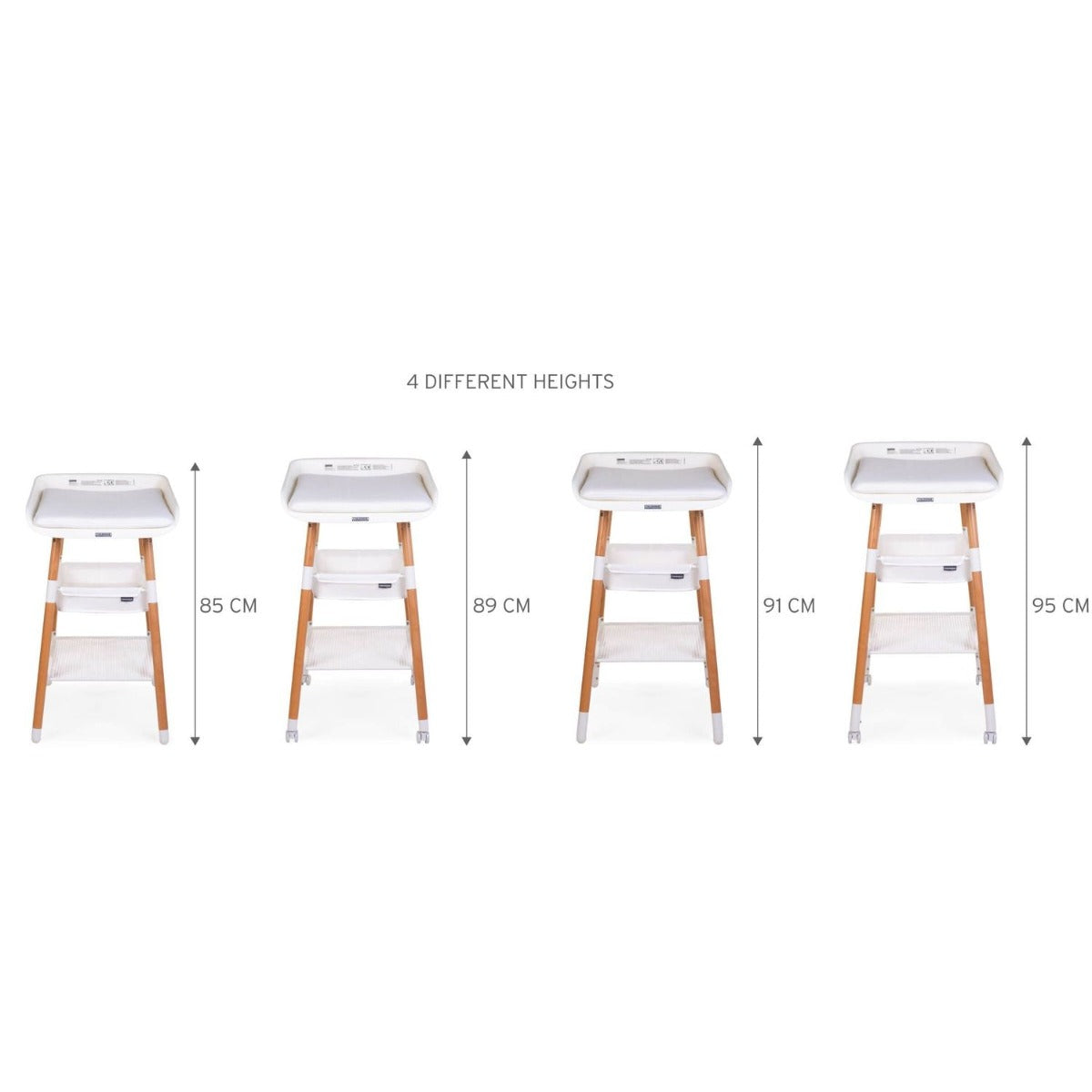 - Wheels & extension legs allow changing table to be adjusted to 4 different heights (85, 89, 91 and 95 cm)