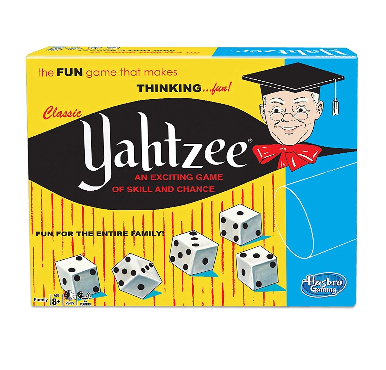 Classic Yahtzee: An Exciting Game Of Skill And Chance is a dice game. It has the same styling as the original game with dice cup, five dice, scorepad and bonus chips. Roll classic dice combinations, like Full House, Large Straight, and Yahtzee! (five-of-a-kind) to score points!